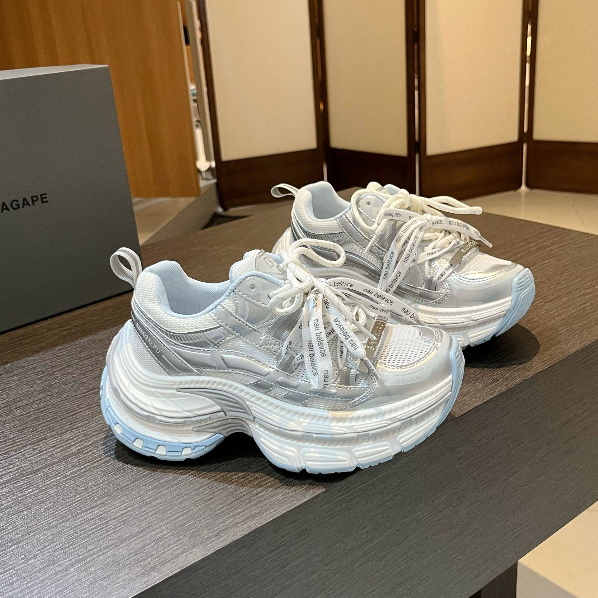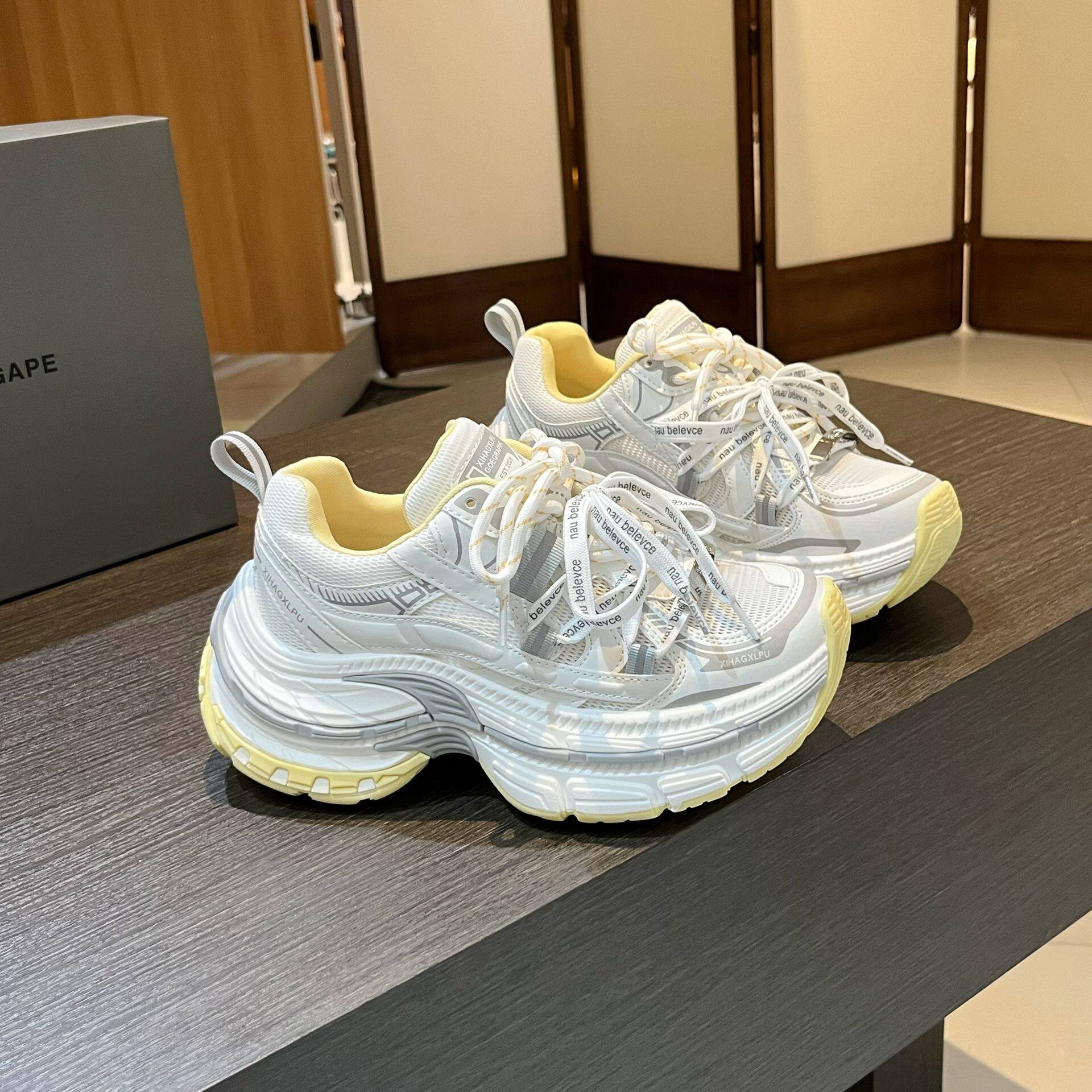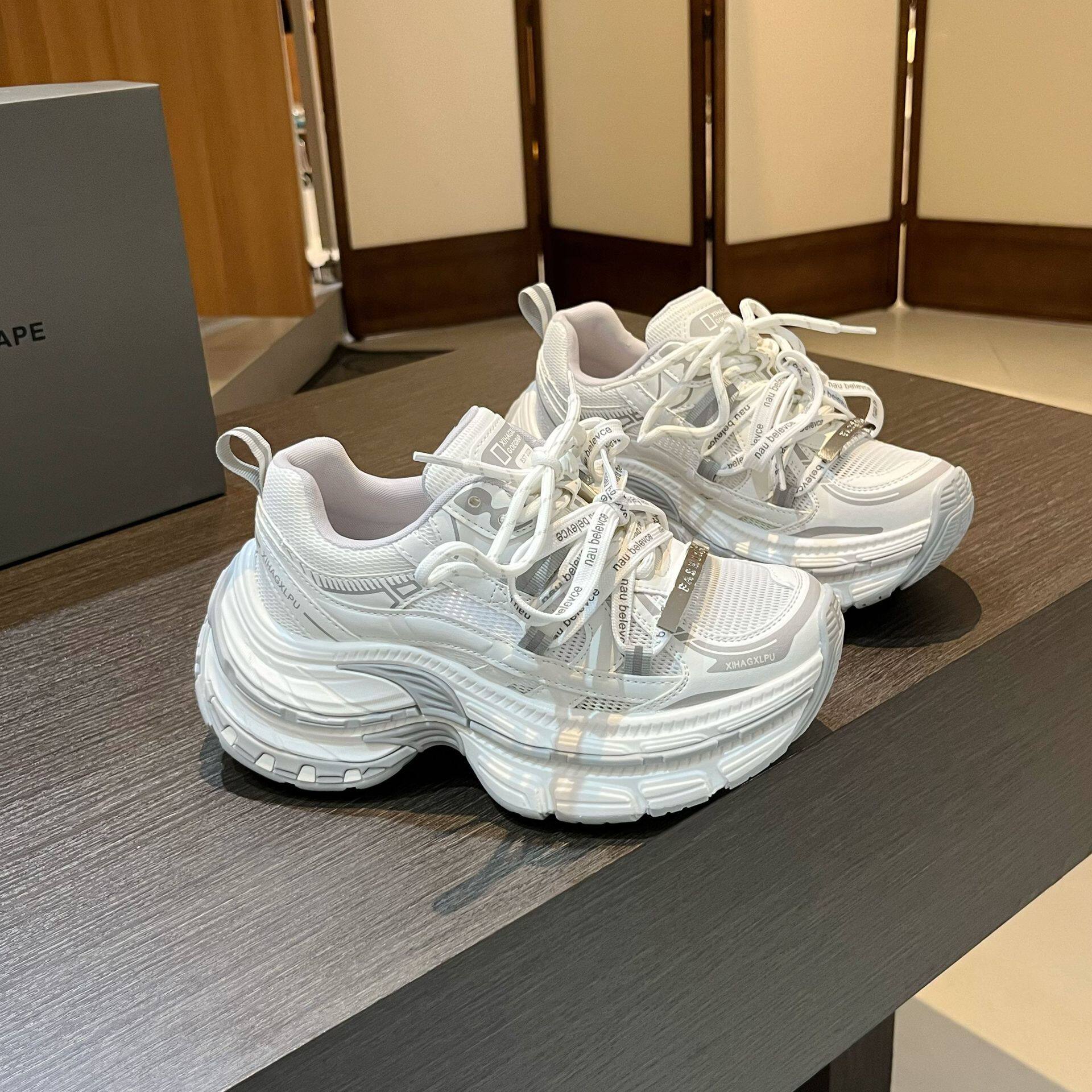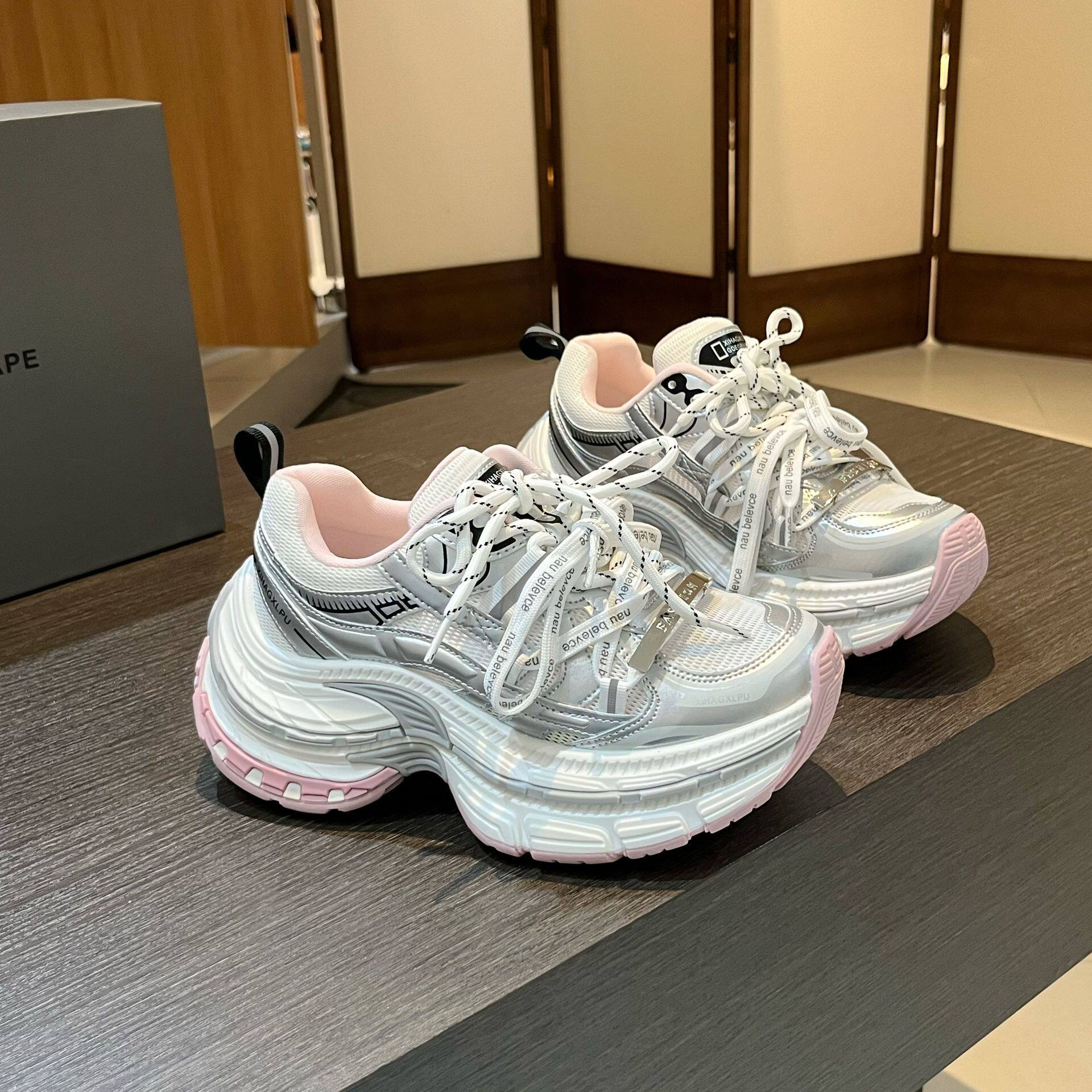 2026新款春夏款松糕底网纱透气系带运动老爹鞋女鞋小个子增高女鞋
