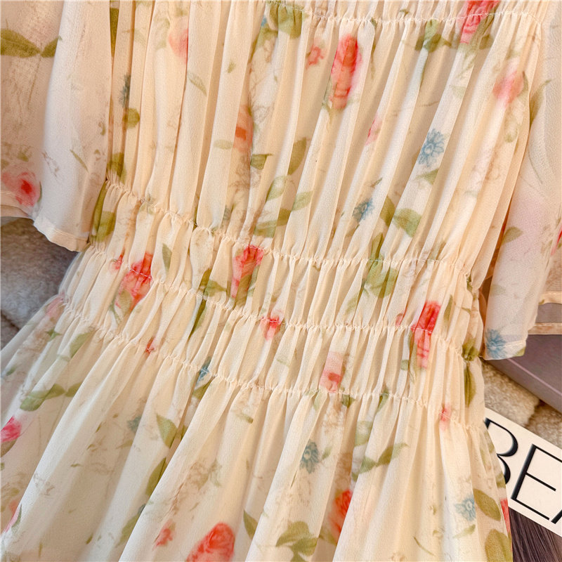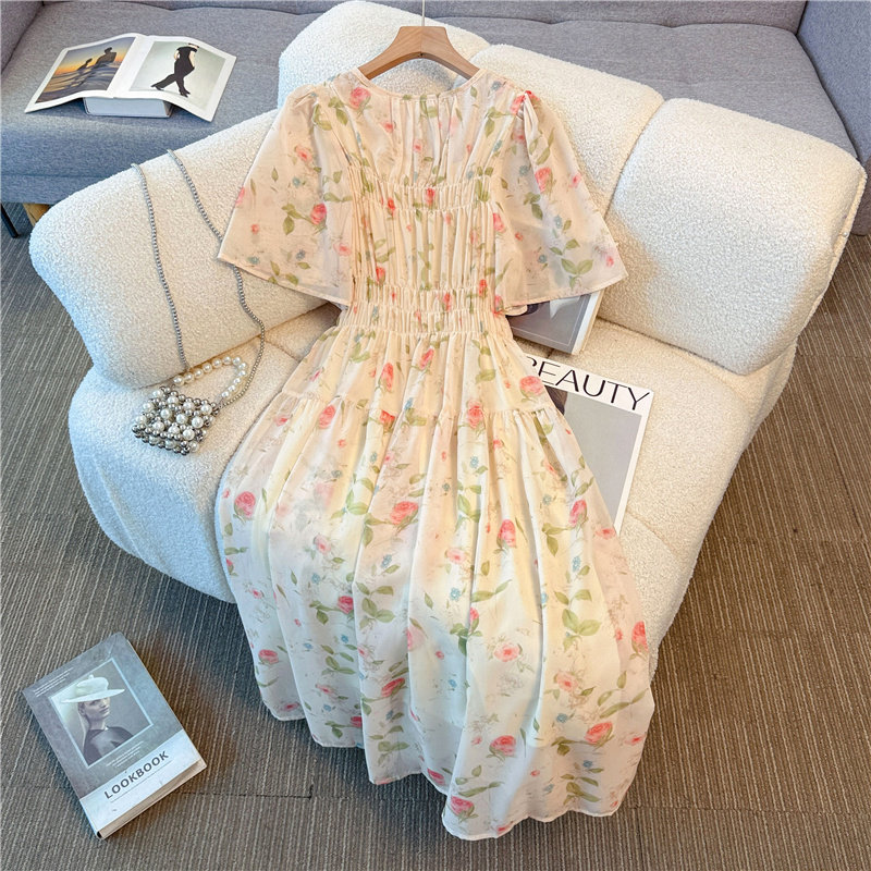 夏季气质优雅飘逸显白仙女裙胖mm高腰显瘦大码海边度假短袖连衣裙