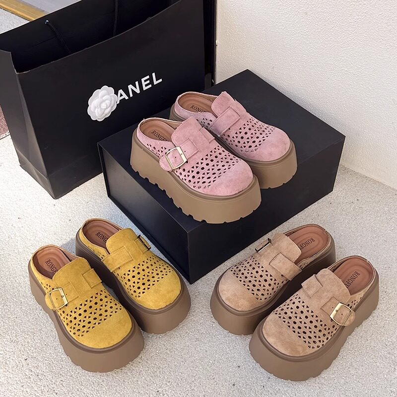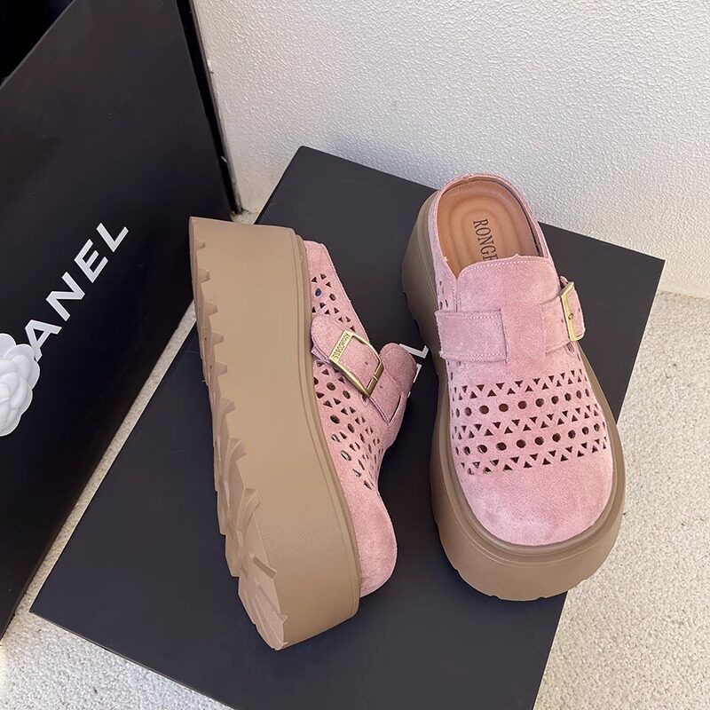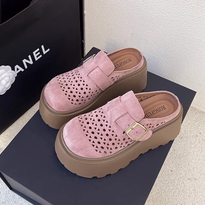 厚底内增高8CM小个子勃肯凉拖鞋女夏外穿2025懒人镂空包头半拖鞋