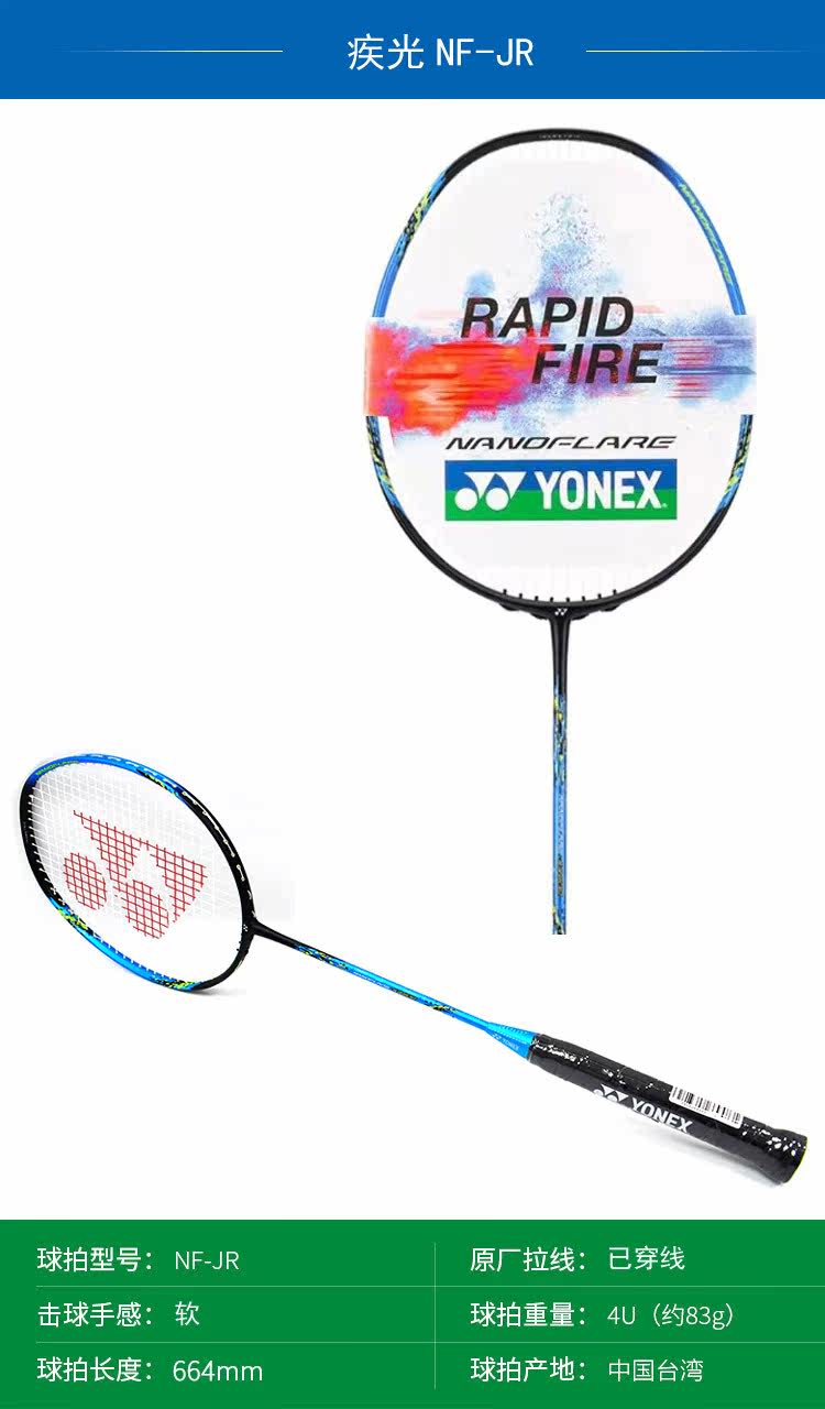 正品YONEX 疾光NF-JR已穿线儿童羽毛球拍 YY尤尼克斯NFJR青少年用