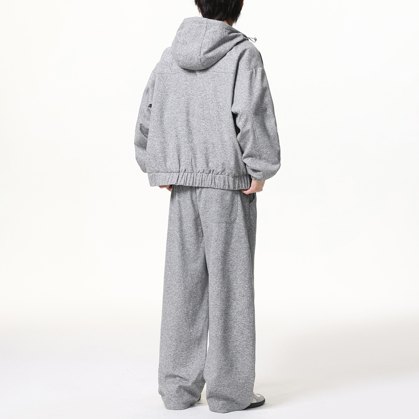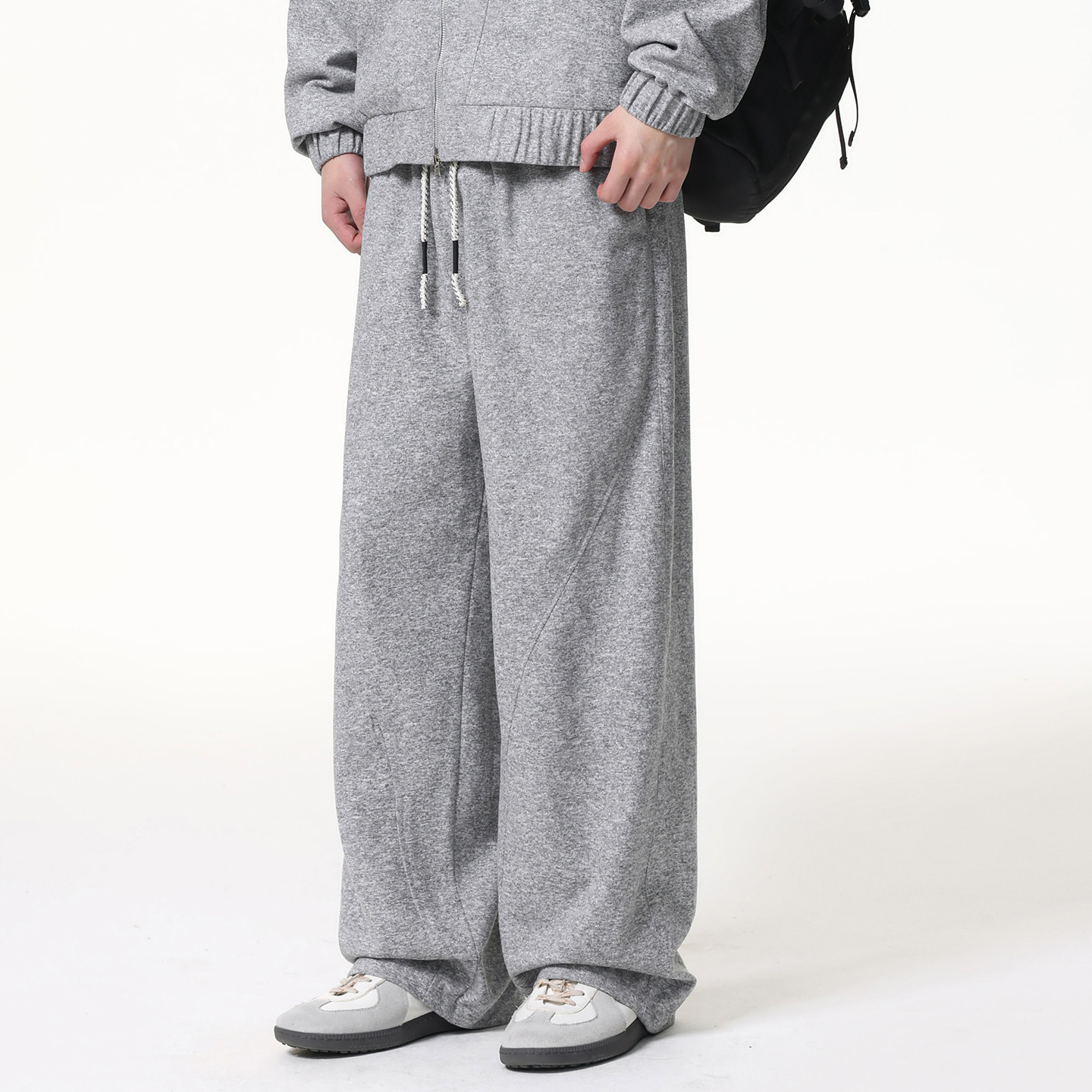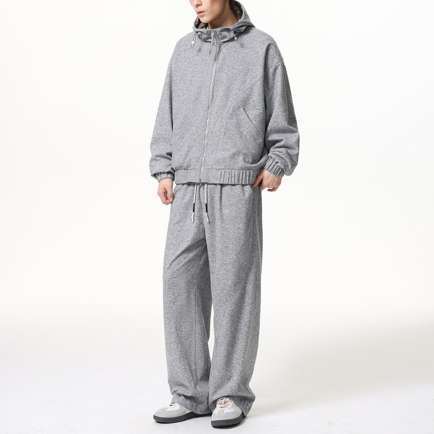 男士灰色美式运动休闲套装男款春季格纹连帽卫衣外套潮流2026新款