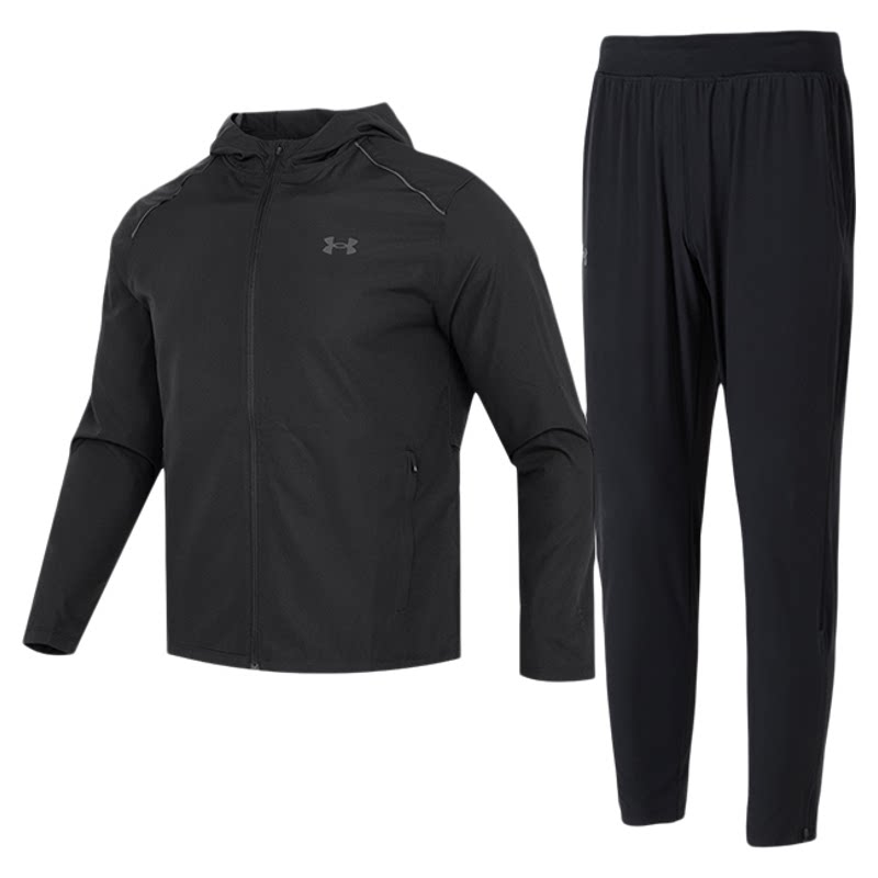 UA安德玛快干运动套装男款2026春季新款黑色跑步外套长裤两件套
