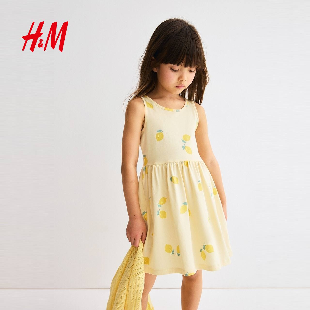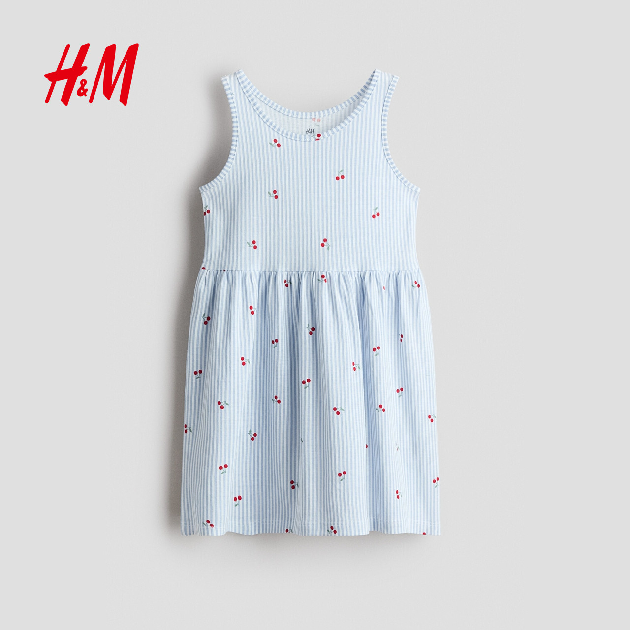 HM童装儿童女童裙子春季洋气可爱无袖圆领印花微喇连衣裙1157735