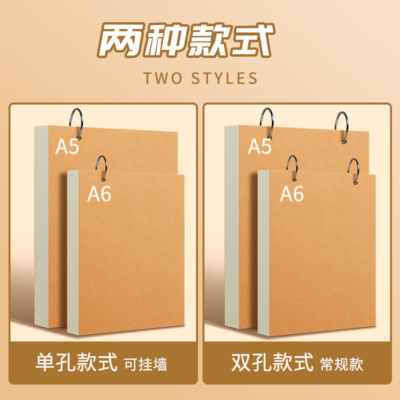 空白笔记本A5活页迷你随身环扣式可拆卸便签本口袋本记账笔记本迷你A6牛皮纸加厚上翻线圈本简约会议记事本