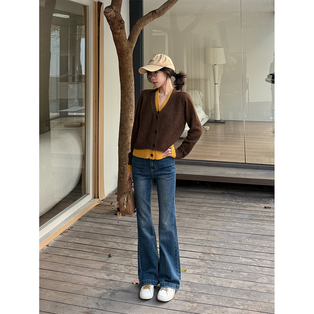 311线报网描述:王家有鱼2025秋冬加绒新款微喇牛仔裤百搭女
