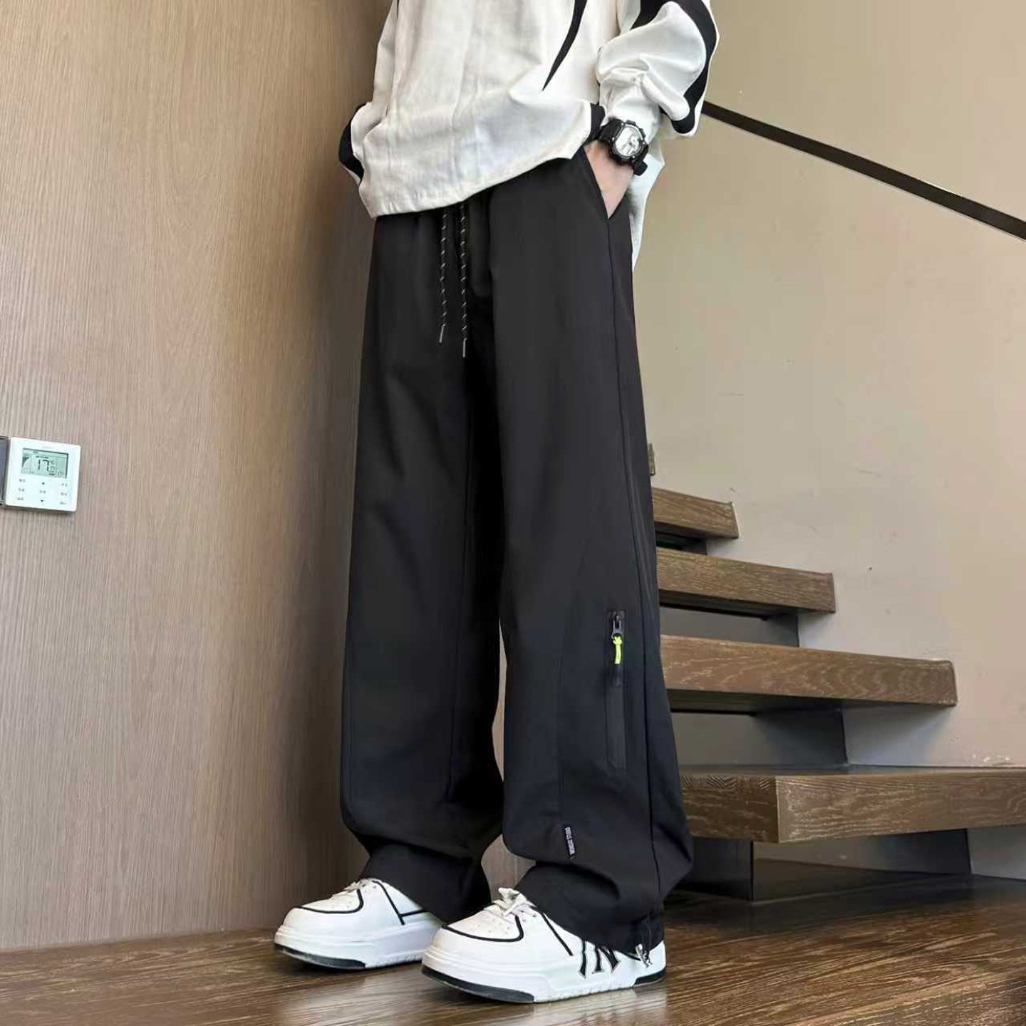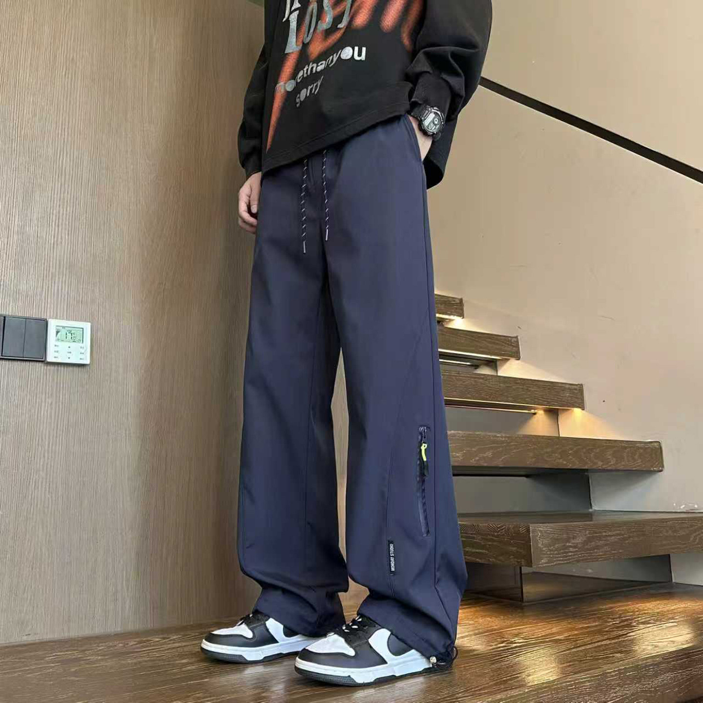 直筒休闲长裤子男生加绒阔腿冲锋学生青少年秋冬季新款运动工装裤