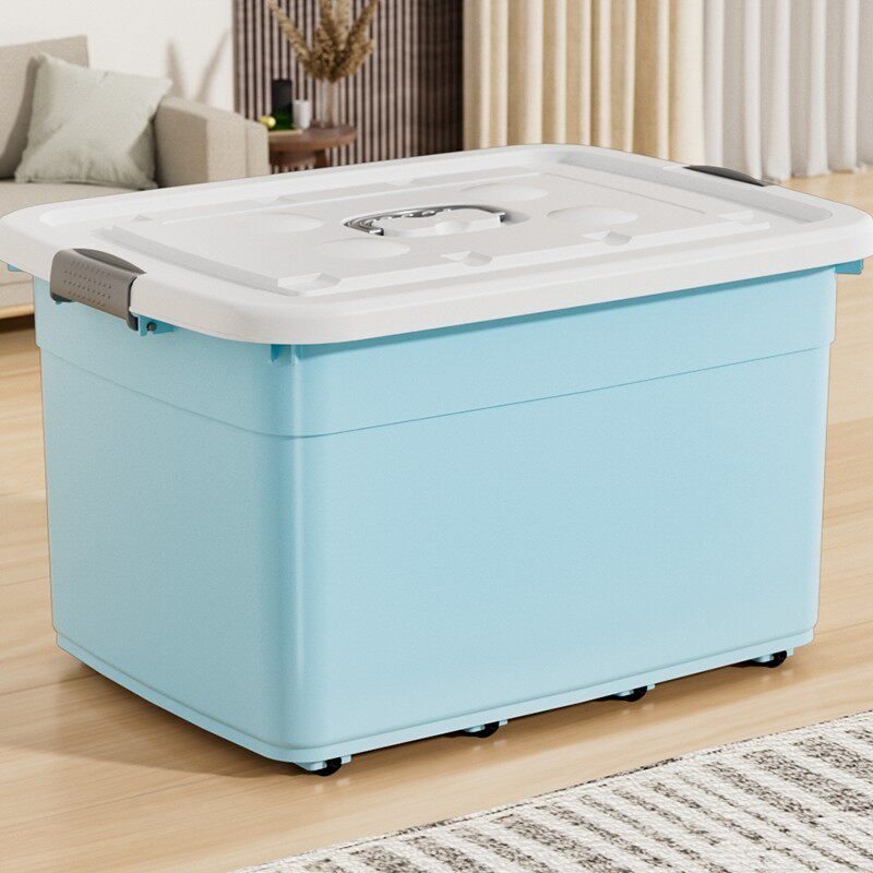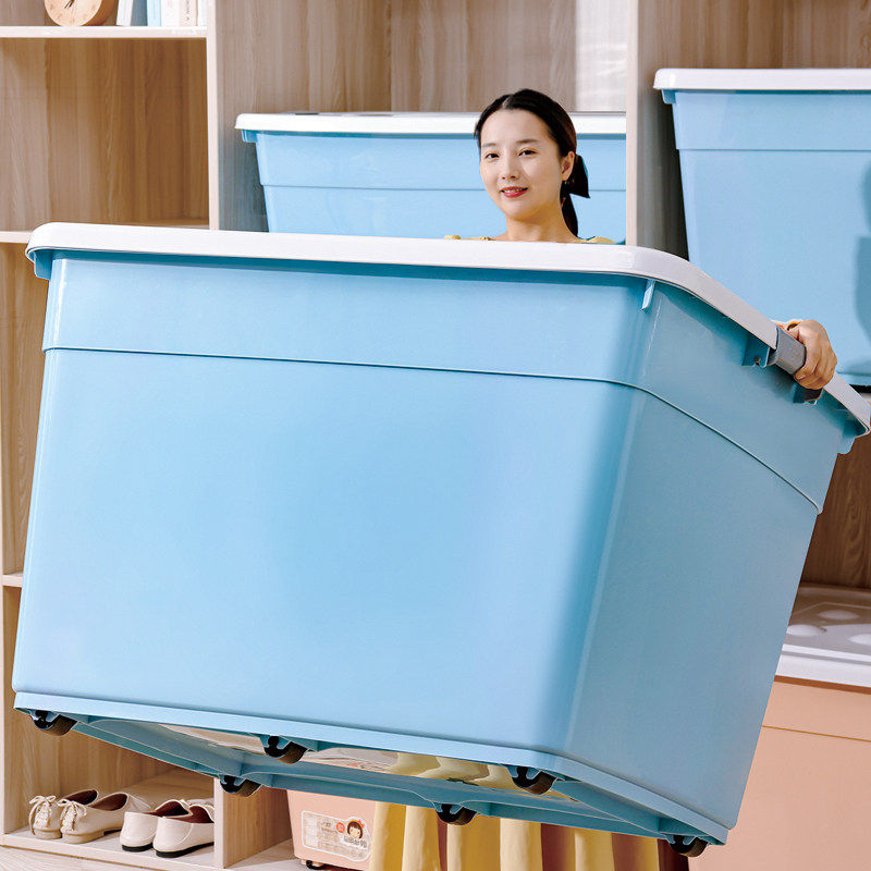 塑料简约带盖通用收纳箱大容量衣物整理箱滑轮家用组合款储物箱
