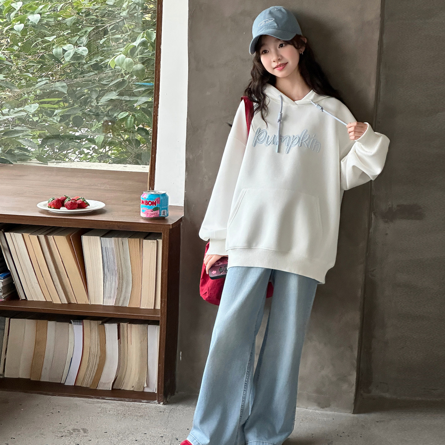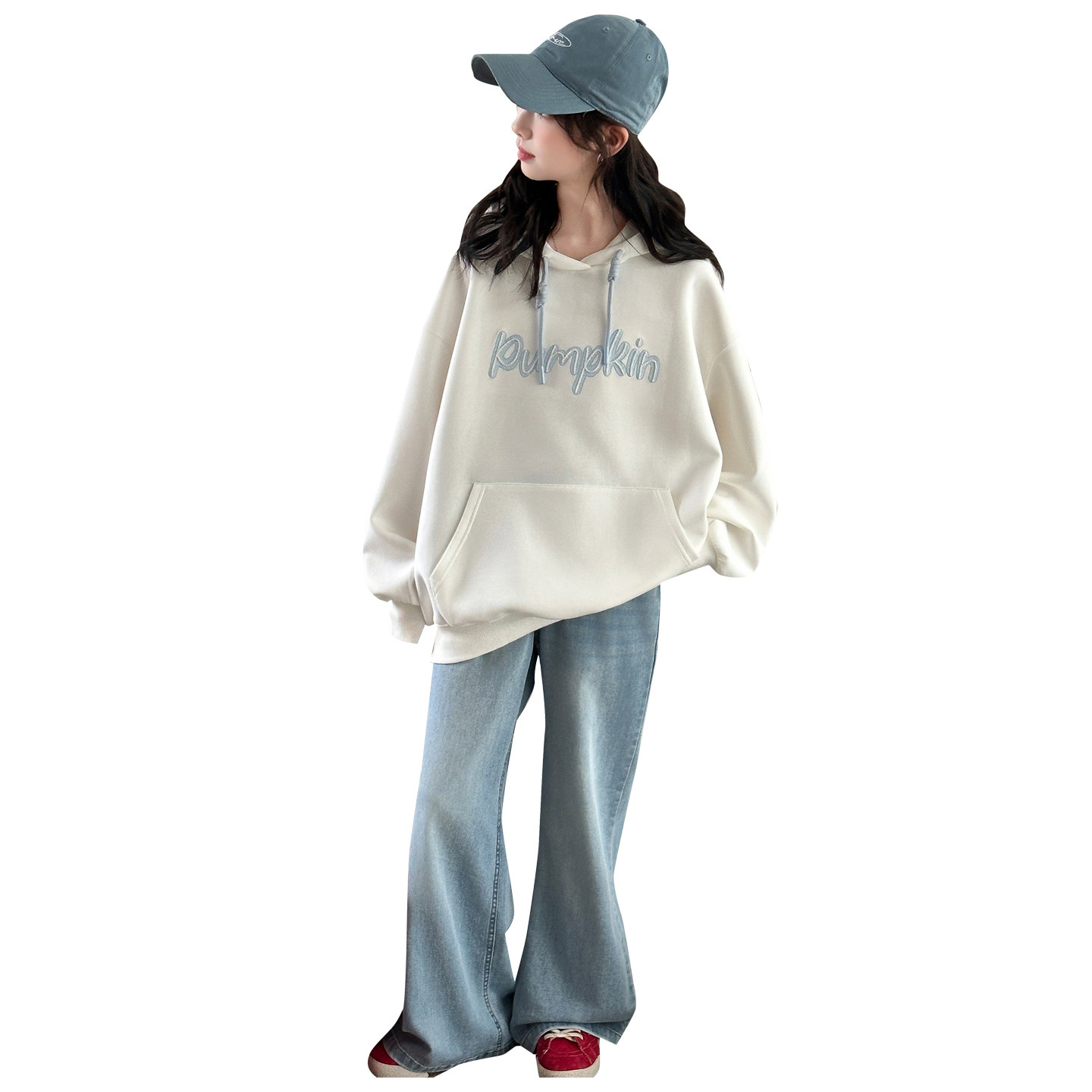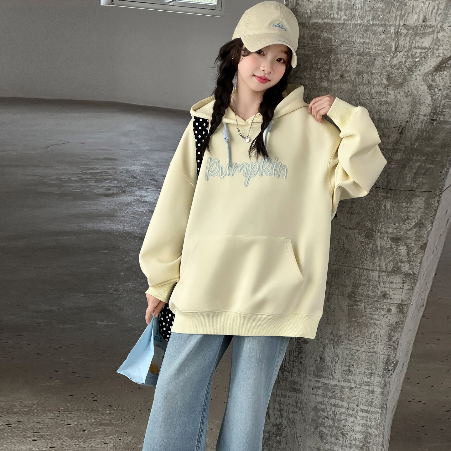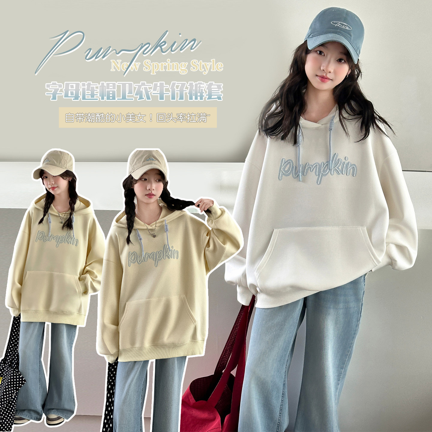 女童春装休闲字母卫衣2026新款洋气春帽衫女孩初中生运动连帽上衣