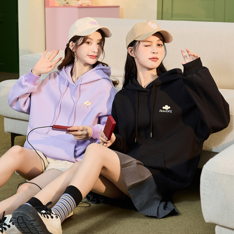 唐狮连帽卫衣女款2026春季新款韩版宽松套头慵懒风小个子爆款上衣