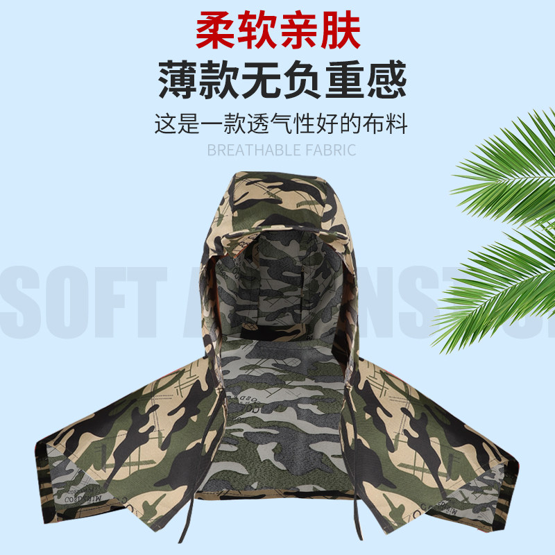 防晒披肩帽防尘防灰尘迷彩牛仔布户外工作男女装卸工打磨透气风帽