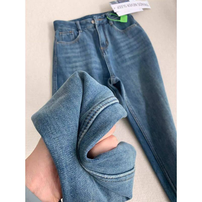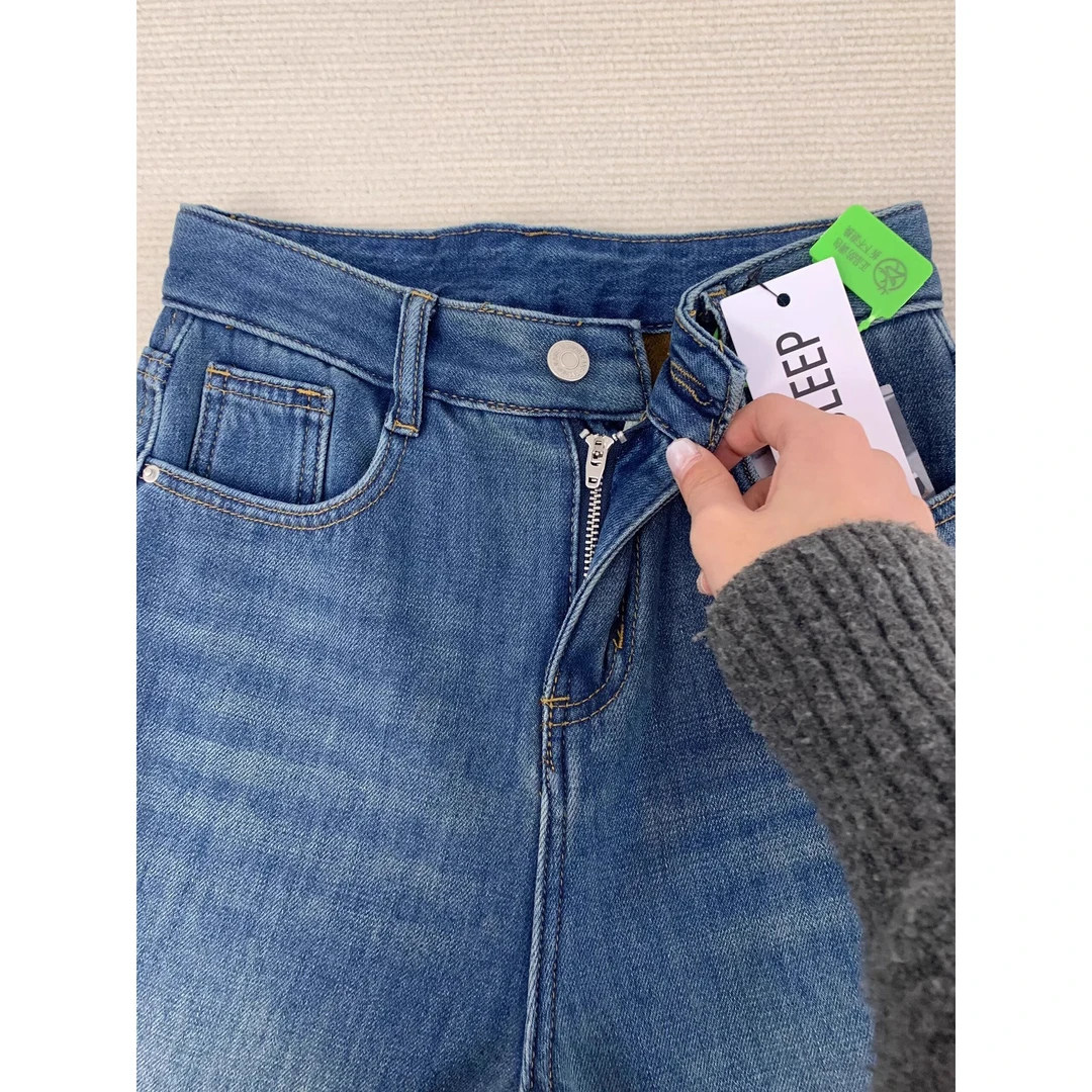 高腰阔腿牛仔裤女2026年新款小个子显瘦窄版春秋加绒宽松直筒裤子