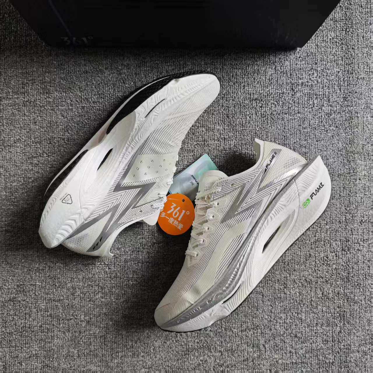 361°飞燃3MIRO银白色防滑耐磨全掌碳板马拉松跑步鞋672412207-2