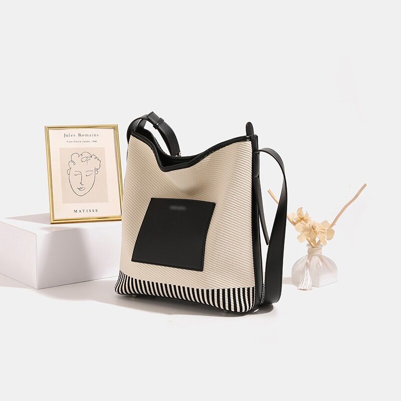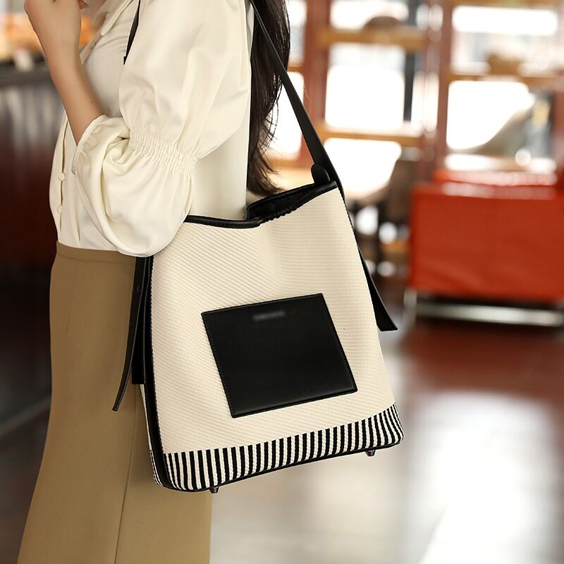 圣米洛宽肩带水桶包包女高级感大容量通勤斜挎包百搭帆布托特包