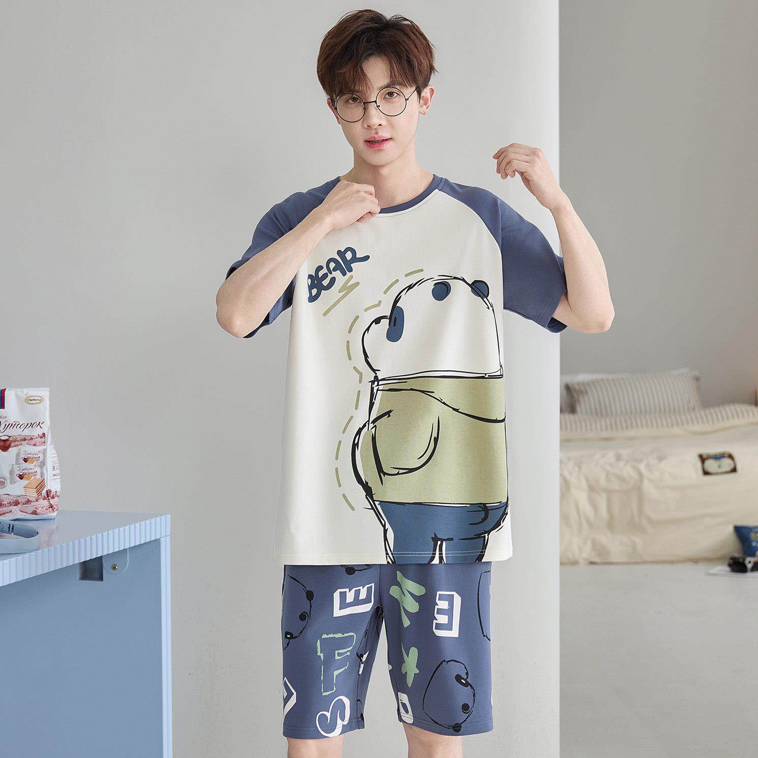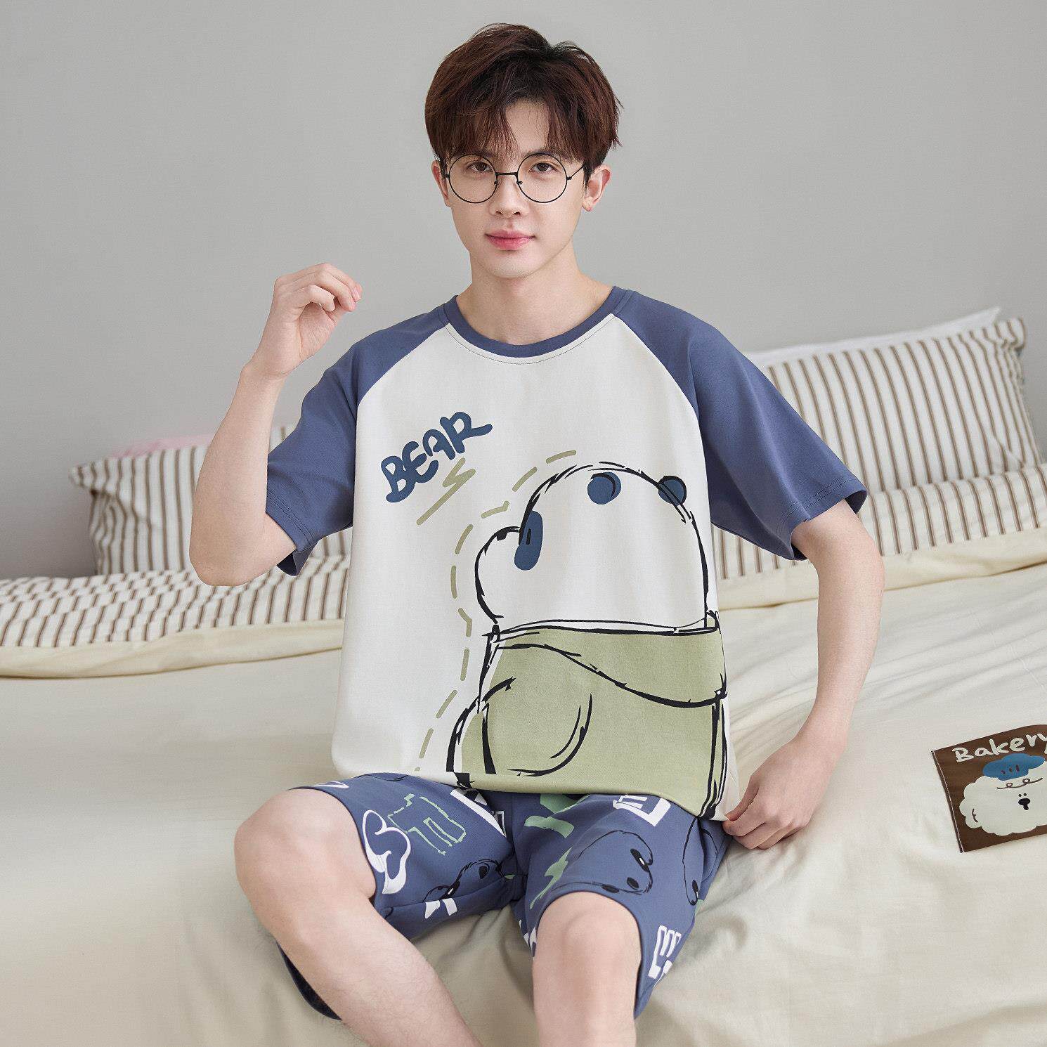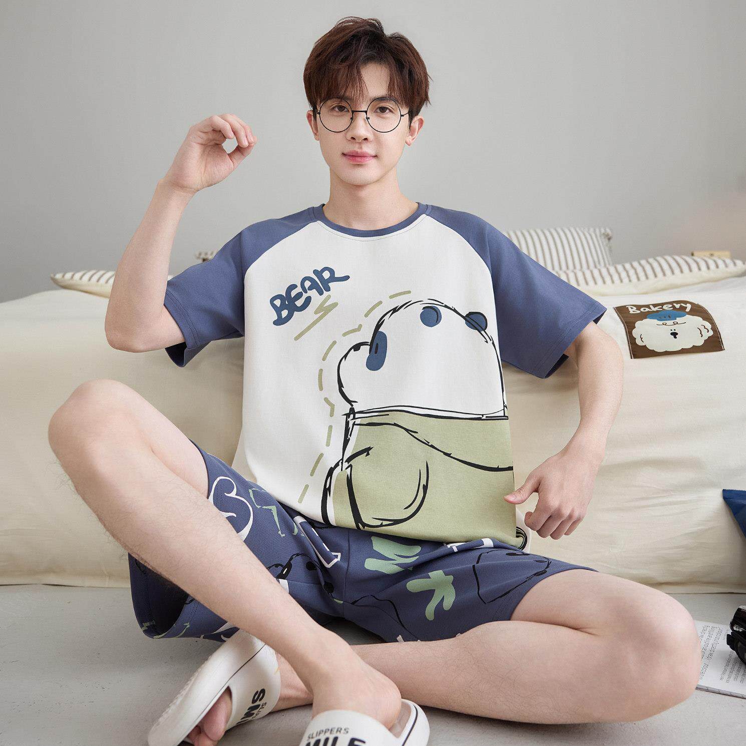 芬腾睡衣男款纯棉短袖夏季2026新款青少年学生卡通薄款家居服男士