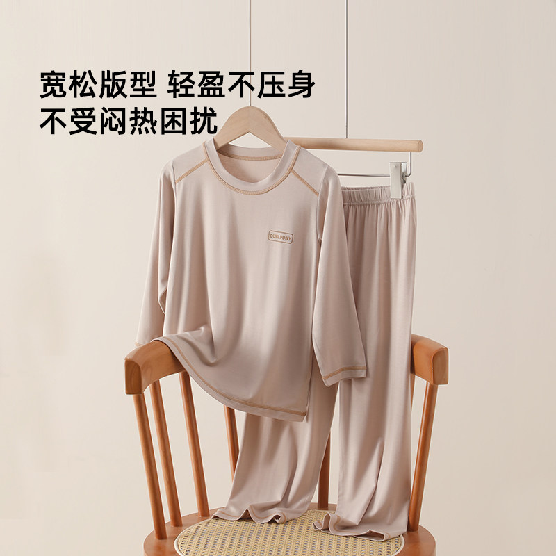 莫代尔儿童长袖睡衣套装男童女童冰丝家居服长裤薄款夏季空调服