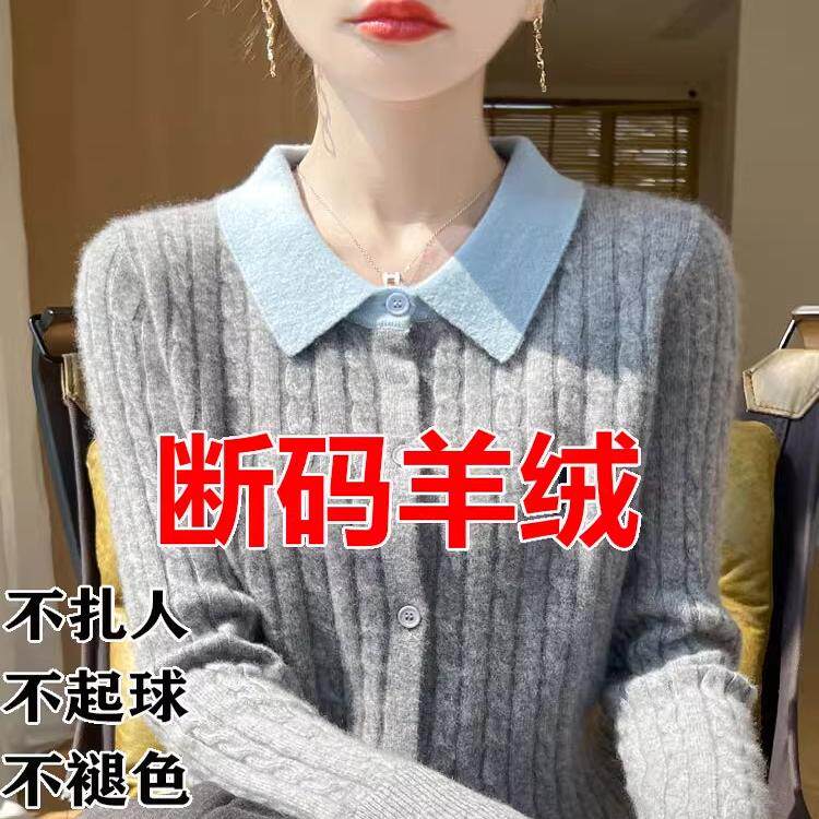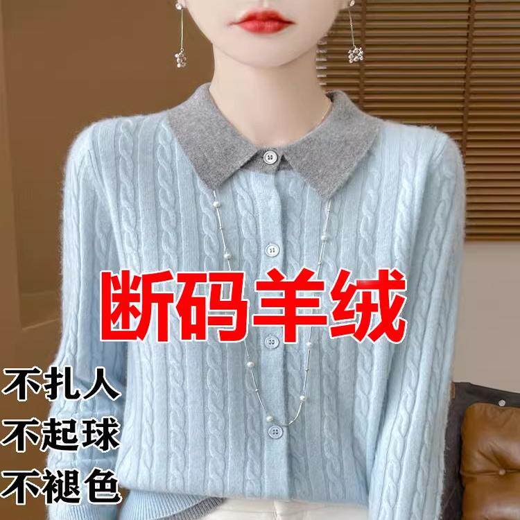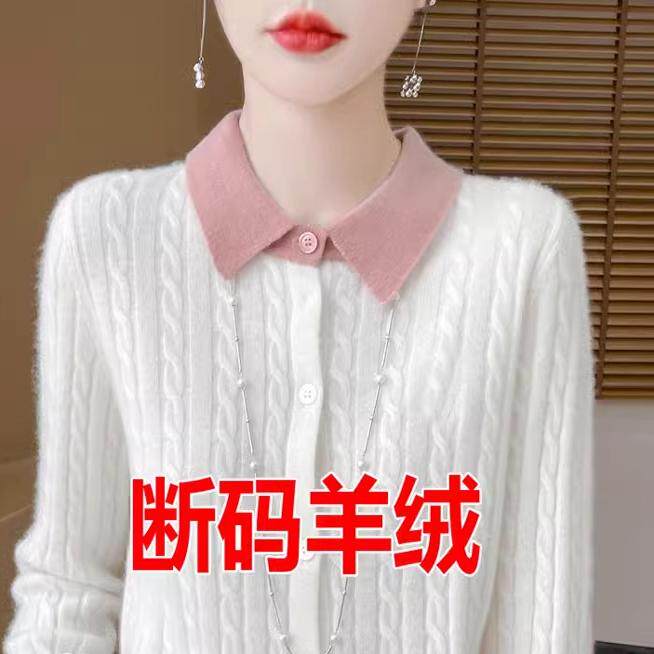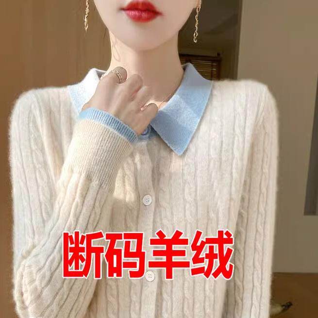 新款羊毛衫女加厚宽松秋冬季翻领针织开衫长袖毛衣女麻花纯色外套