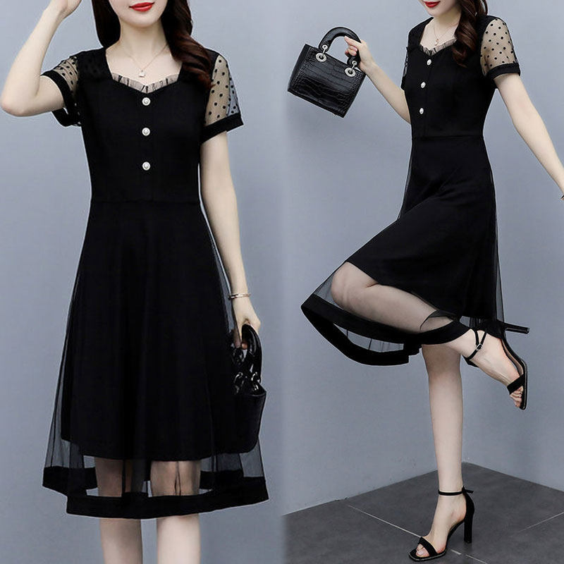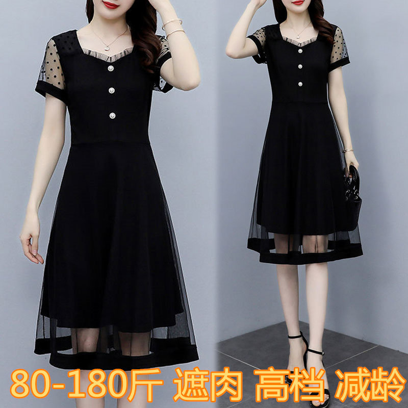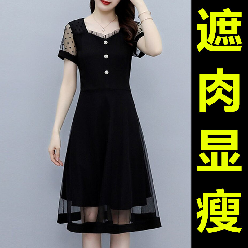 夏季新款大码连衣裙微胖mm洋气质遮肚遮胯显瘦矮小个子妈妈a字裙