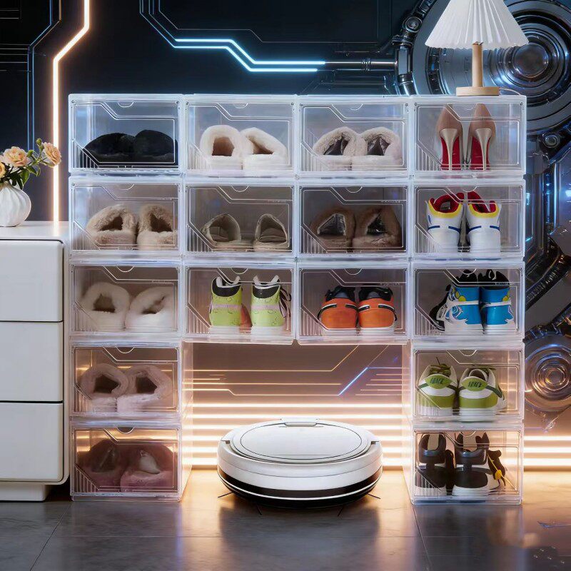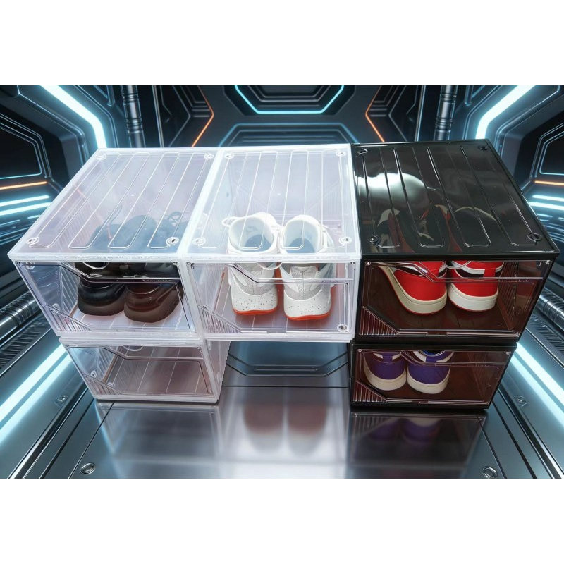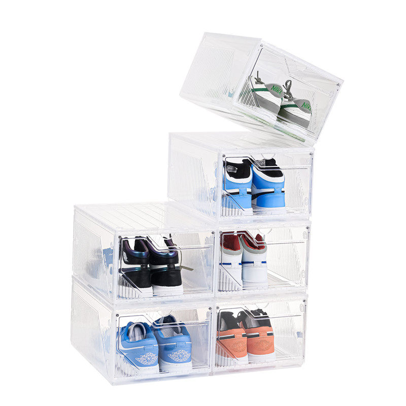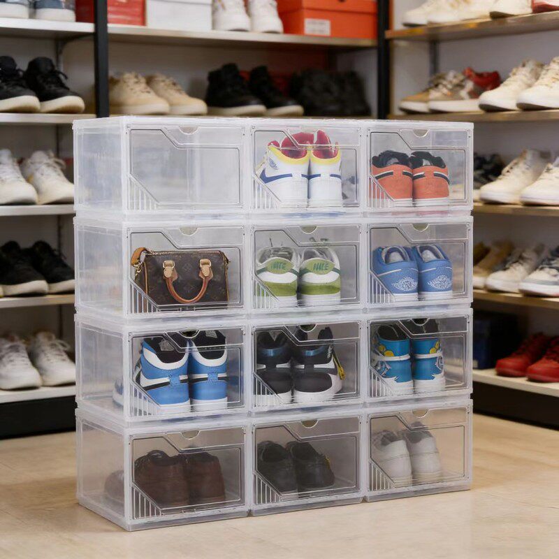日式竖版磁吸透明鞋盒翻盖式塑料可叠加防尘鞋柜网红鞋子收纳多层
