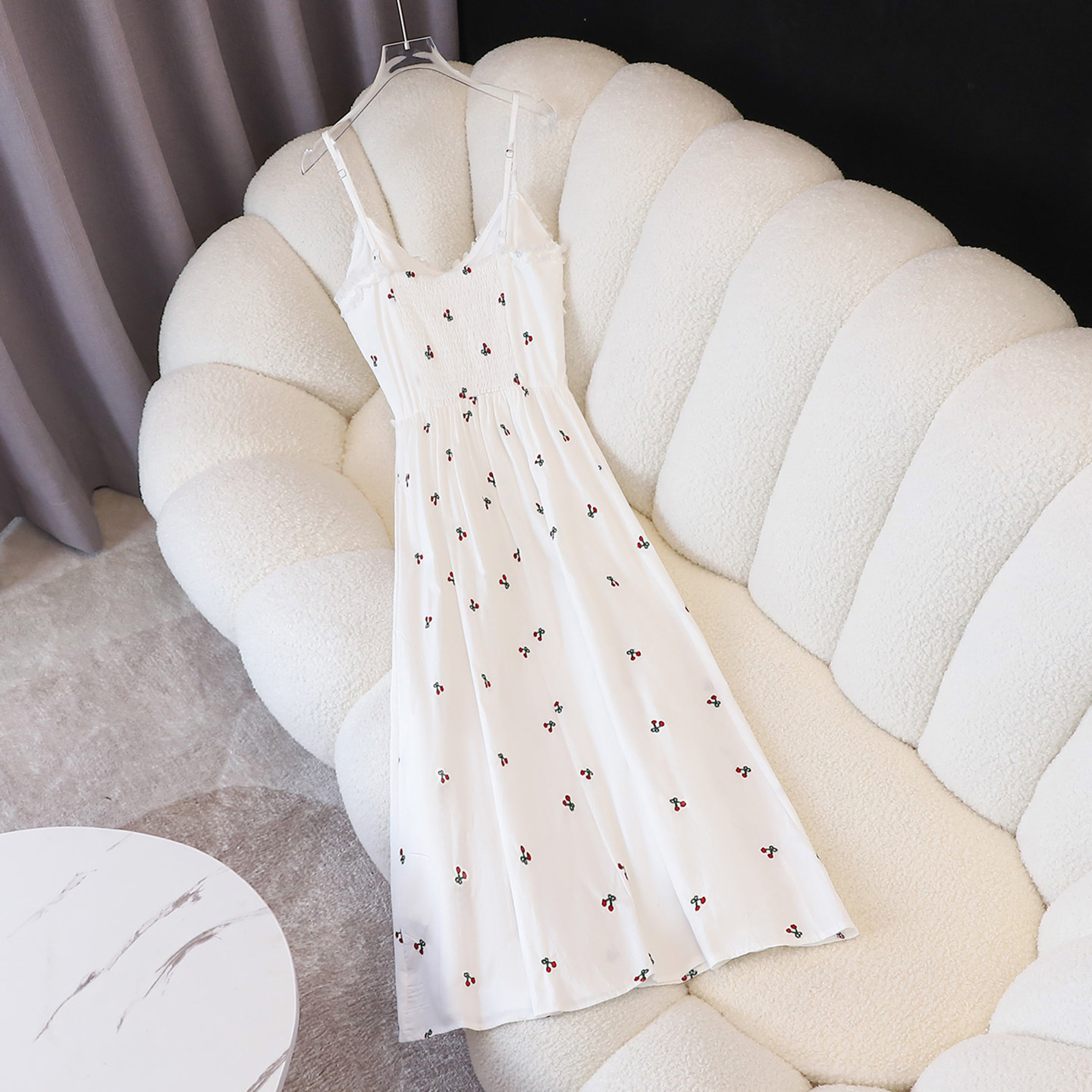 拉夏贝尔刺绣白色吊带连衣裙小个子夏季新款收腰显瘦温柔风中长裙