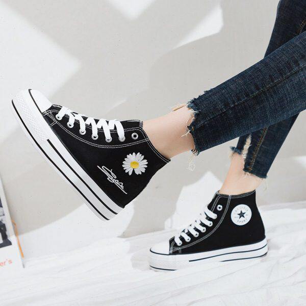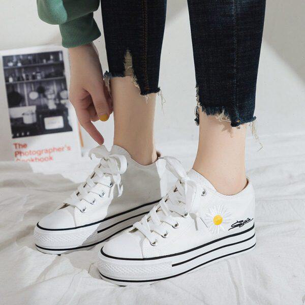 内增高帆布鞋女2024新款高帮厚底5隐形春款鞋子春秋8cm女鞋小个子