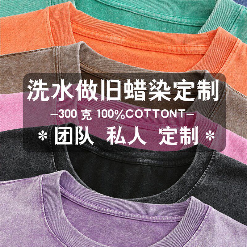 300g洗水做旧重磅纯棉t恤工作服定制美式潮牌班服diy印字logo刺绣