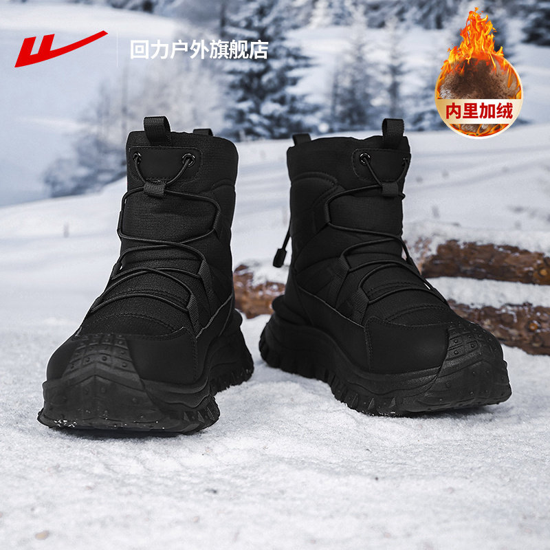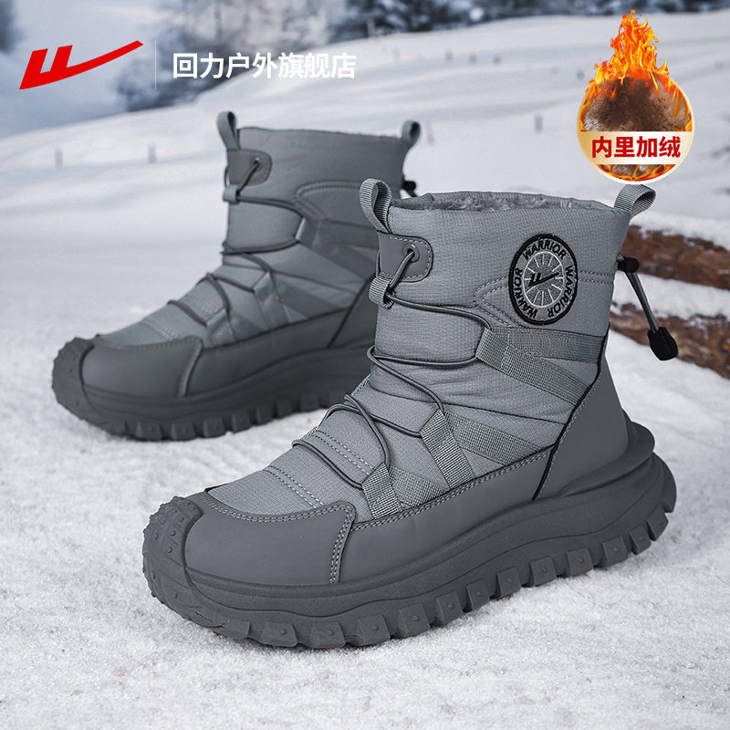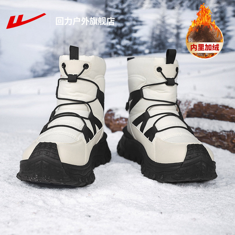 311线报网描述:回力旗舰店正品厚底高帮加绒加厚保暖雪地靴