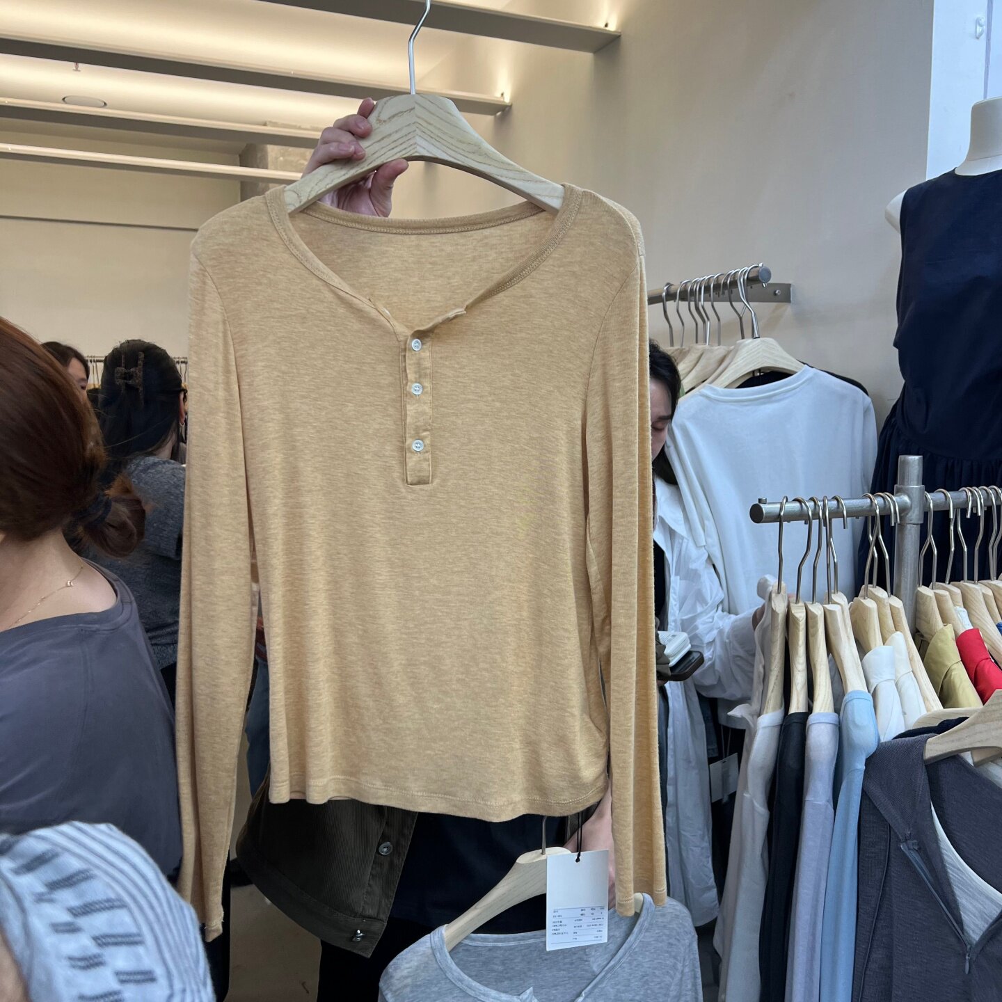 WEARELAB2026春季新款简约百搭纯色修身显瘦天丝T恤长袖上衣11391