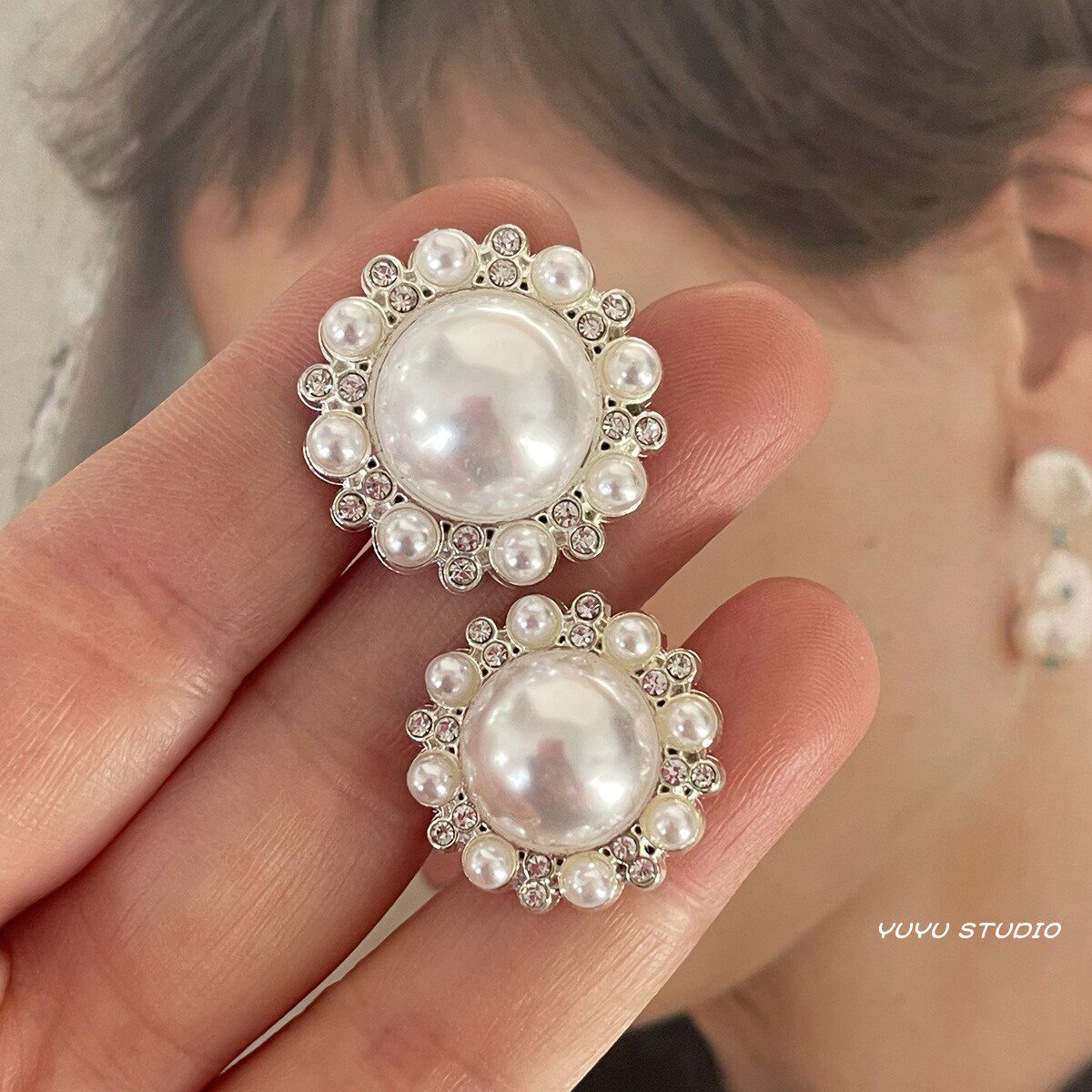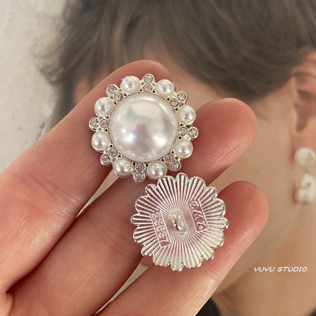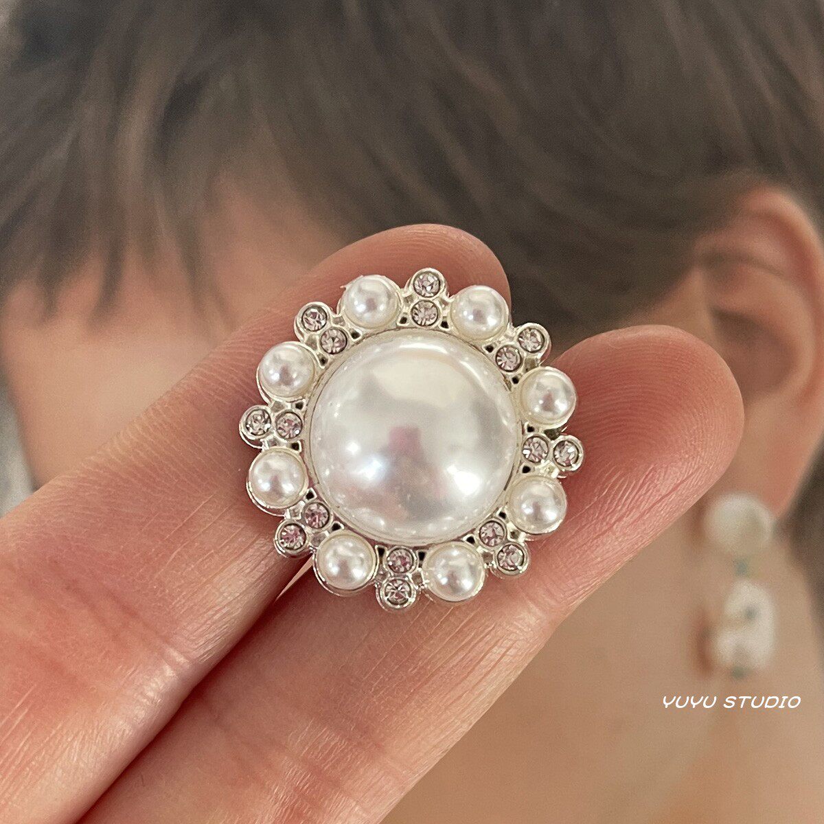高档白色珍珠镶钻钮扣皮草大衣装饰扣西服外套毛衣连衣裙金属钮扣