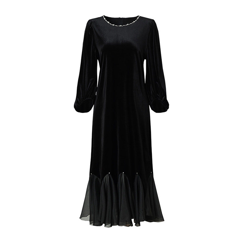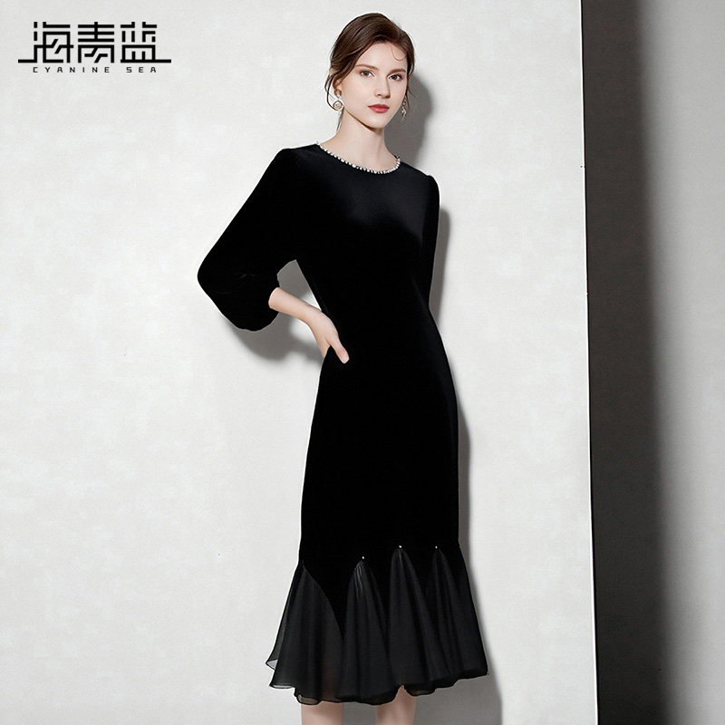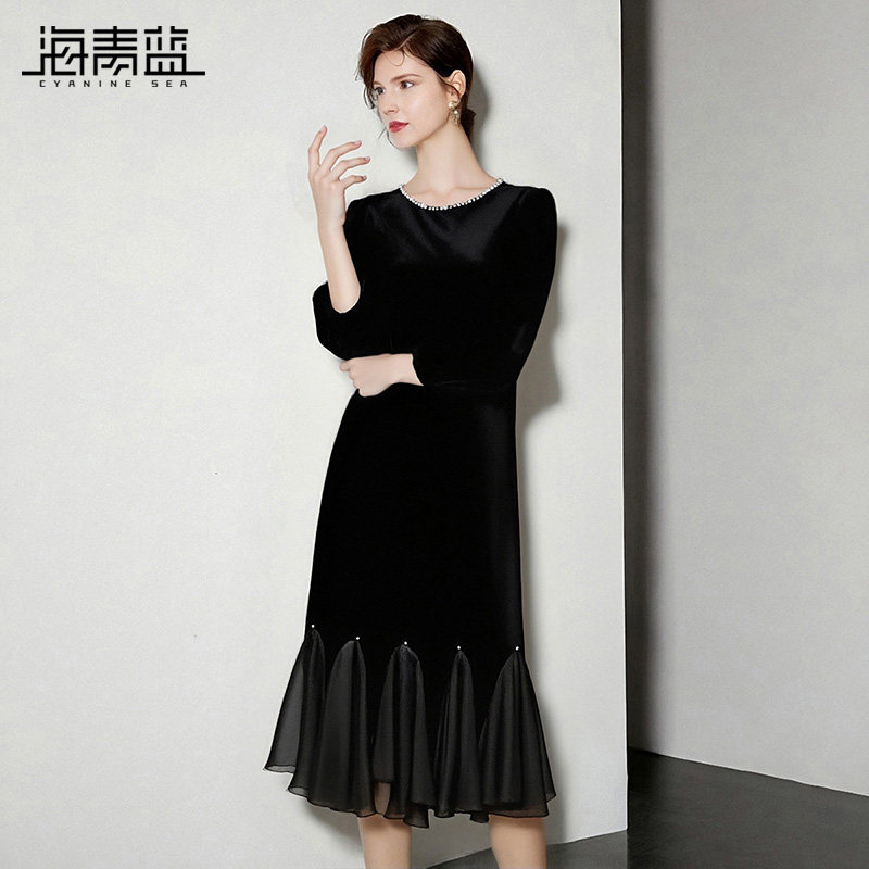 海青蓝 高级感法式连衣裙秋冬女2026年新款小个子长裙赫本风裙子