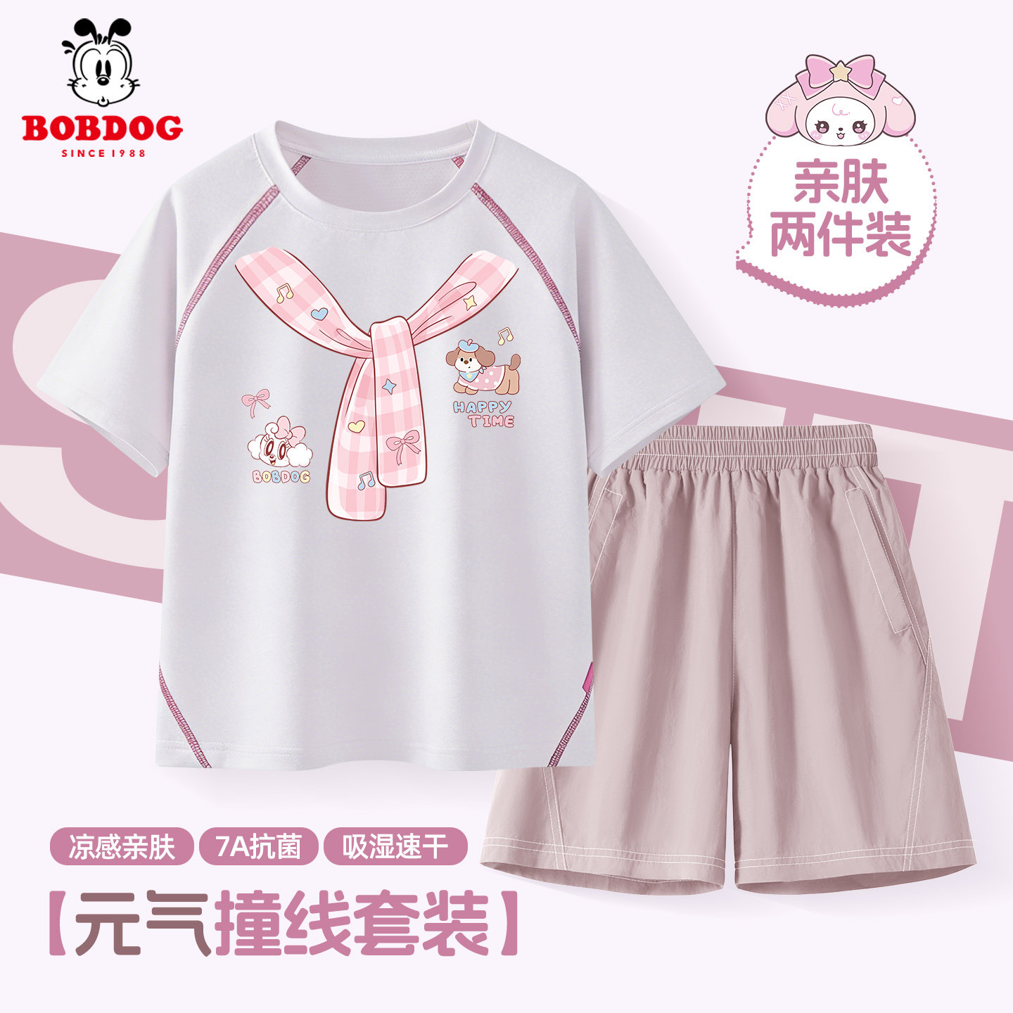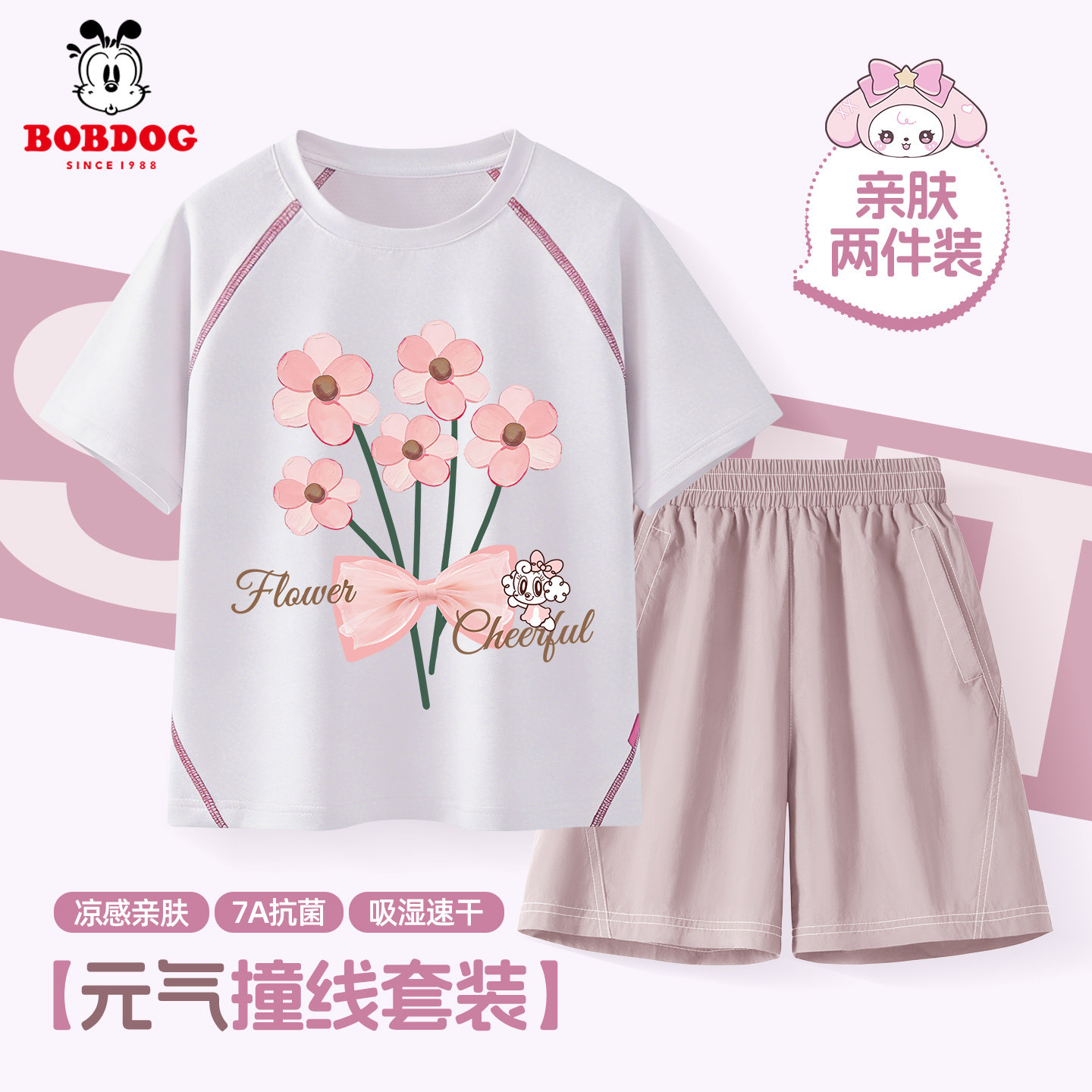 巴布豆童装女童夏季套装2026新款薄款儿童短袖t恤休闲中大童短裤