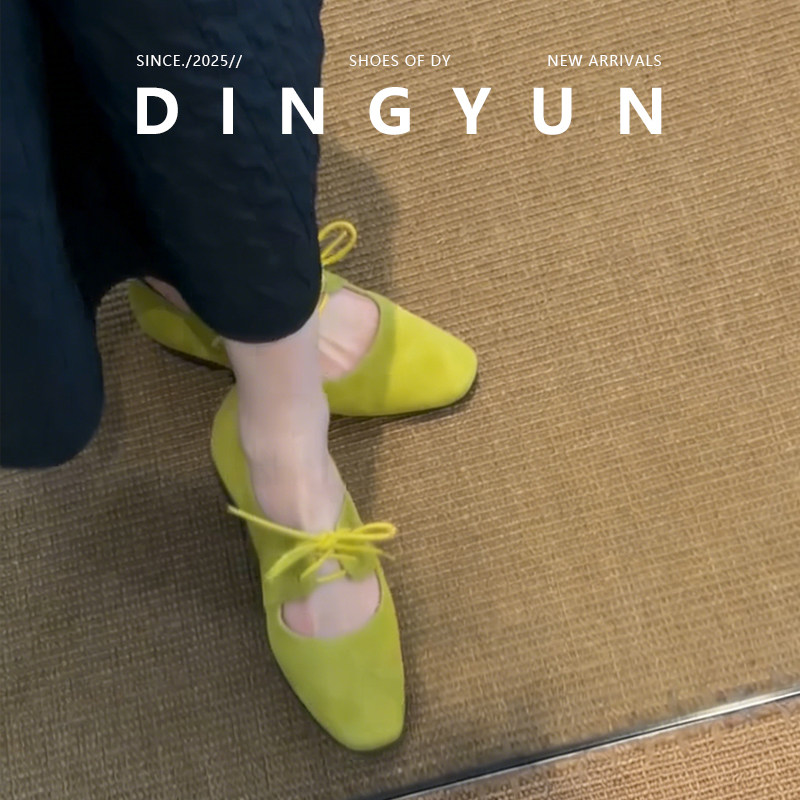 羊皮版dingyun丁允设计感单鞋小众浅口粗跟中跟系带玛丽珍女鞋春