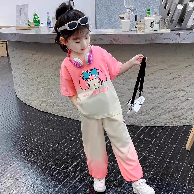 美乐蒂衣服女童夏装运动套装2025新款网红炸街中小儿童短袖速干裤