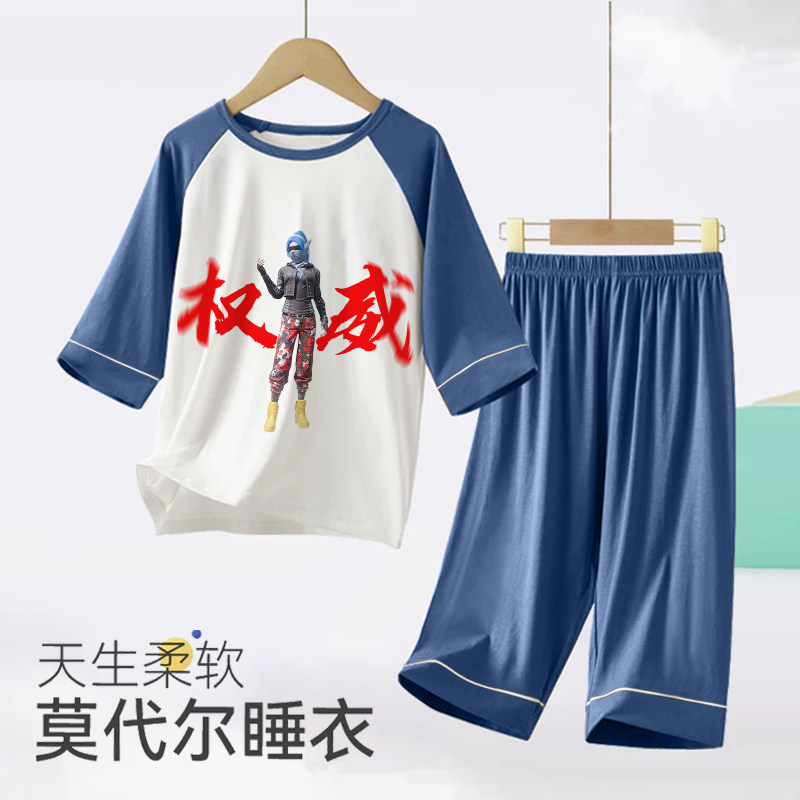 男童睡衣薄款夏季可外穿儿童家居服刺客伍六七男孩莫代尔卡通套装