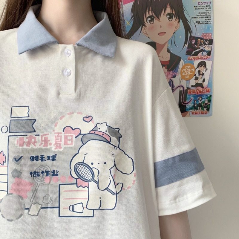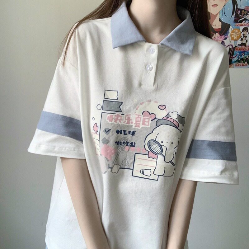 女大童纯棉T恤夏装13胖女孩宽松韩版12-15岁初中学生polo短袖上衣