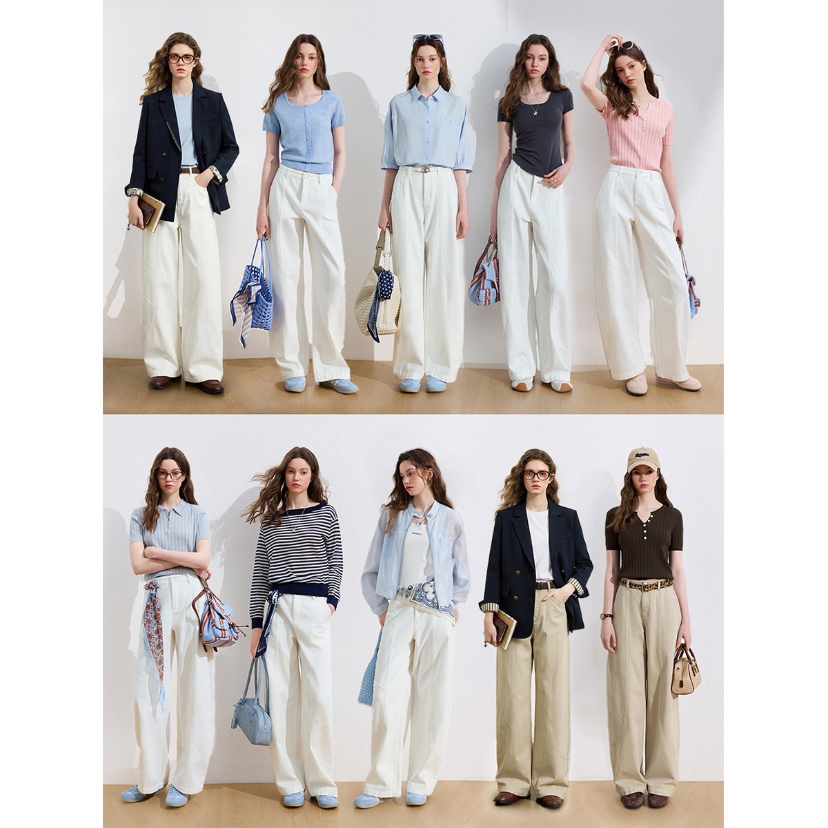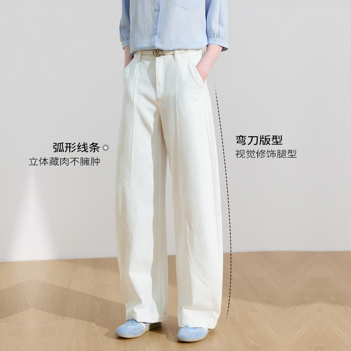 【100%棉】KBNE小个子高腰白色牛仔裤女2026夏季新款弯刀阔腿裤子