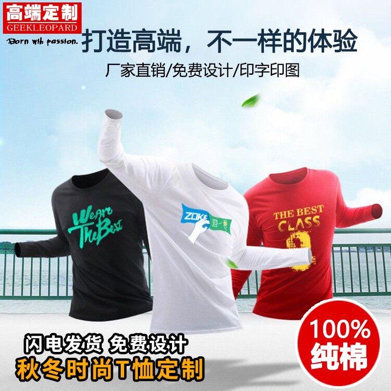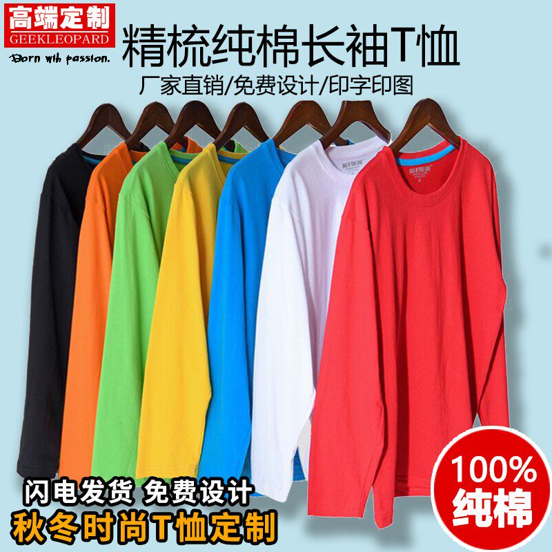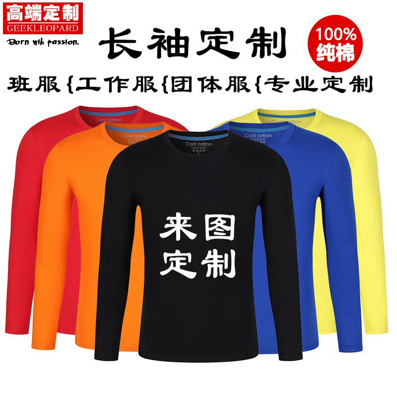 纯棉长袖t恤定制圆领班服同学聚会衣服文化广M告衫工作服印字logo