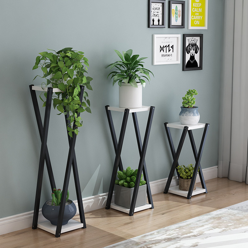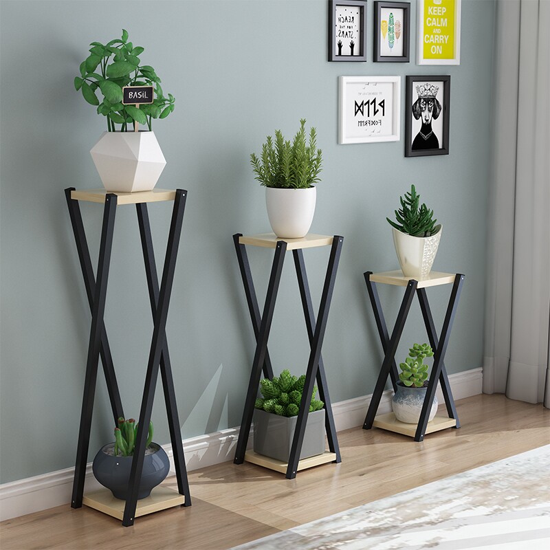 钢木花架子客厅多层落地式简约现代阳台室内绿萝置物架吊篮花盆架
