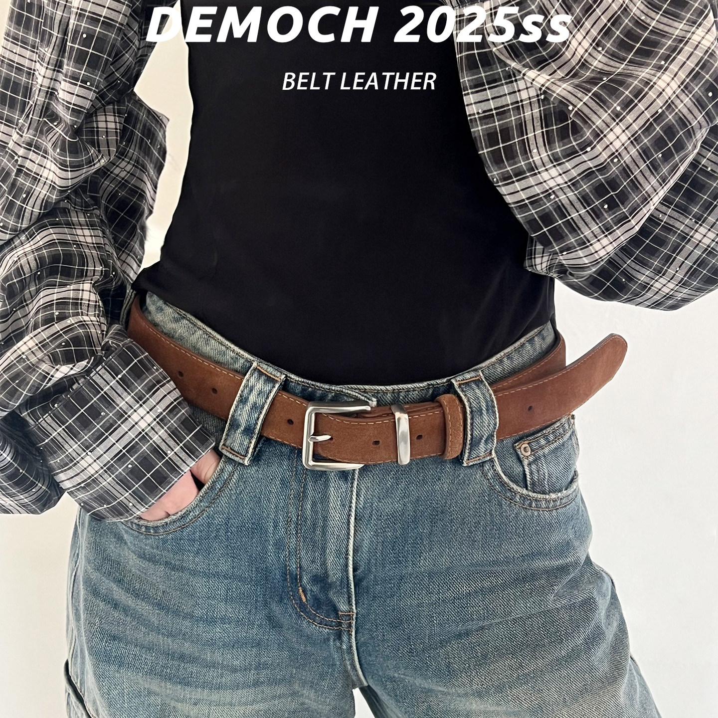 头层牛皮针扣皮带2025新款复古美式配牛仔裤带磨砂真皮腰带男女款