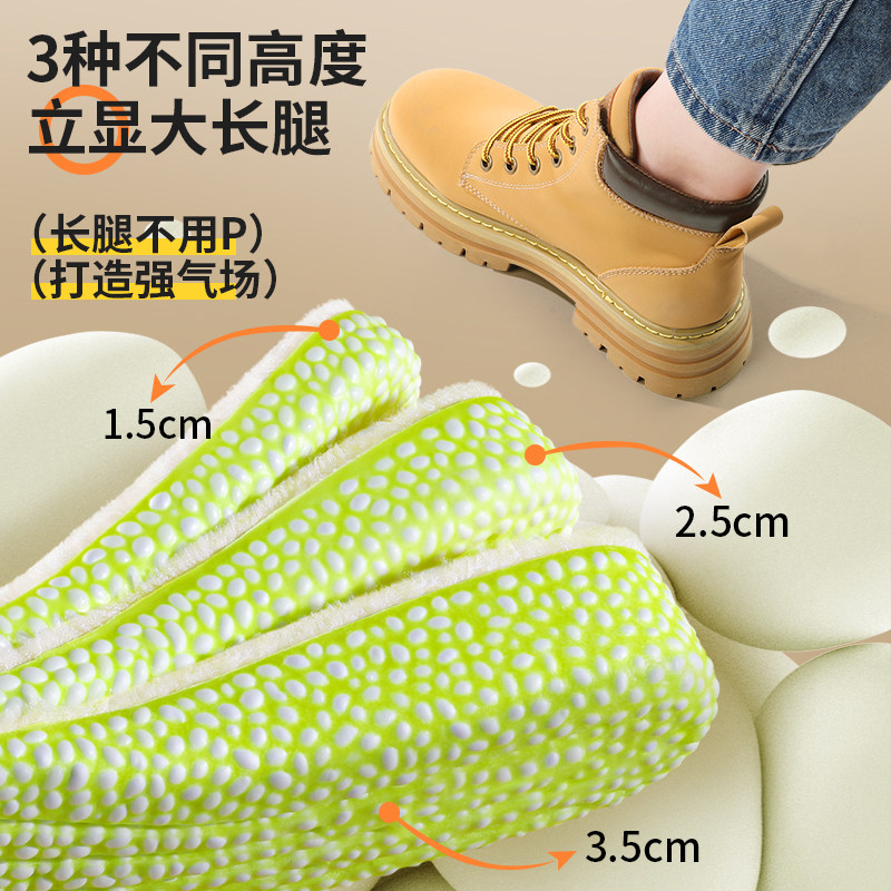 马丁靴专用增高鞋垫冬季女款踩屎感隐形内增高男士加绒增高垫