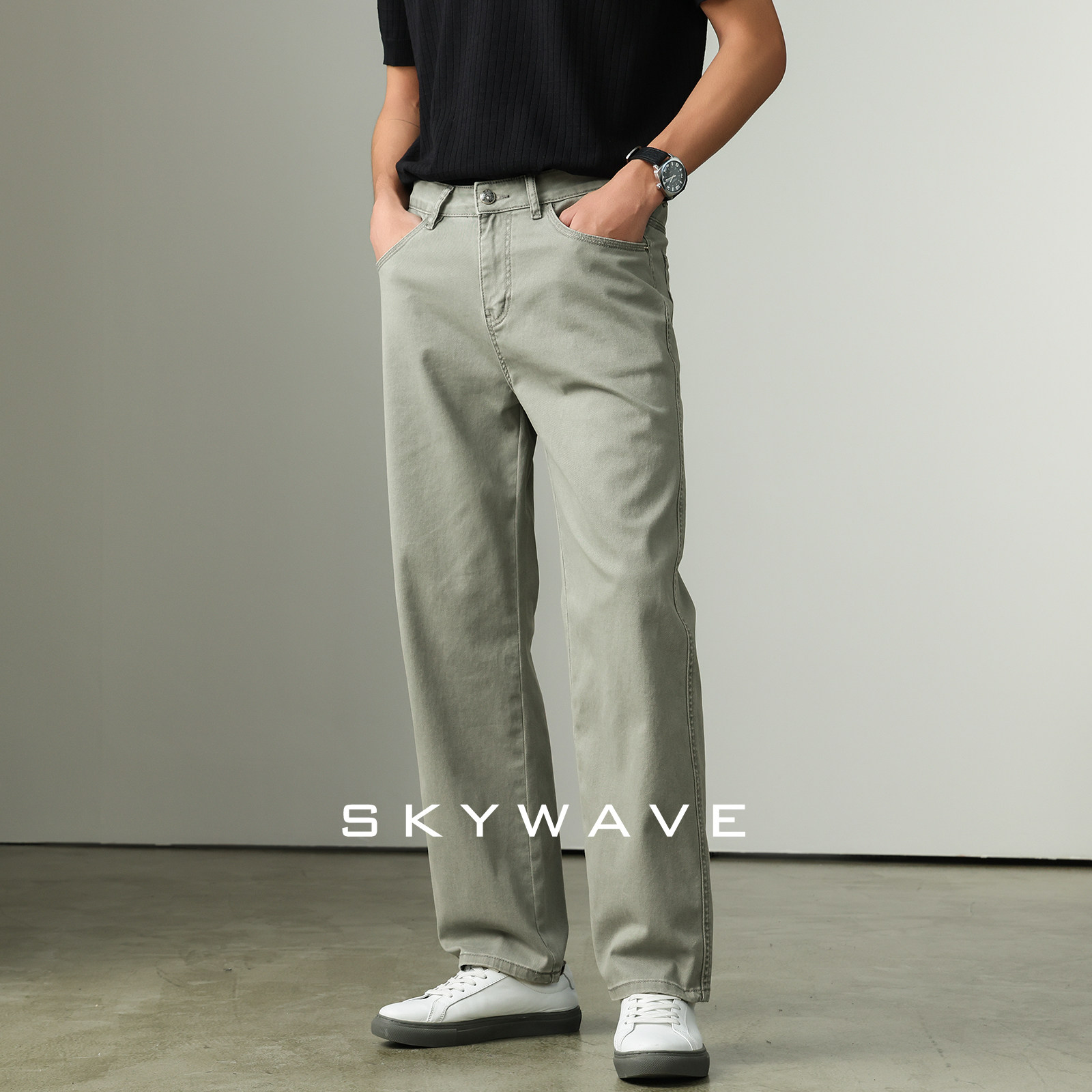 2026新款今年流行爆款薄荷绿牛仔裤男直筒高级感百搭通勤弹力裤子