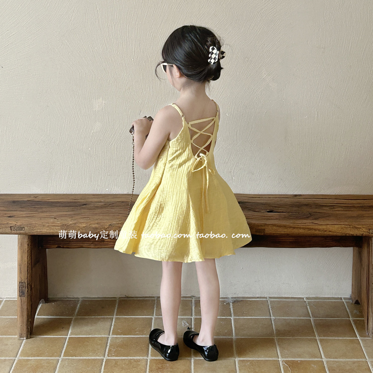 女童露背黄色吊带连衣裙2025夏季新款女孩气质海边度假高级感裙子