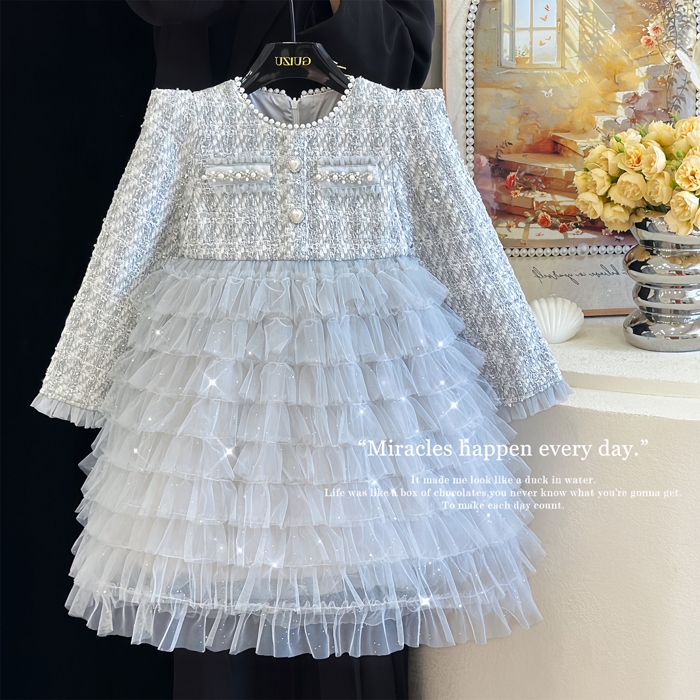 女童连衣裙冬季儿童加厚加绒小香风公主裙高级感名媛风气质礼服裙