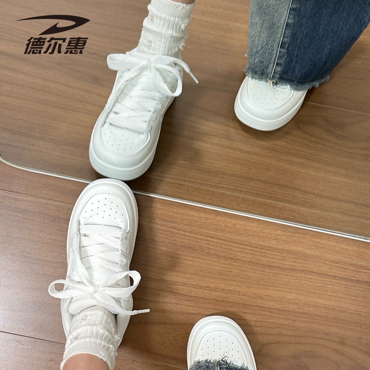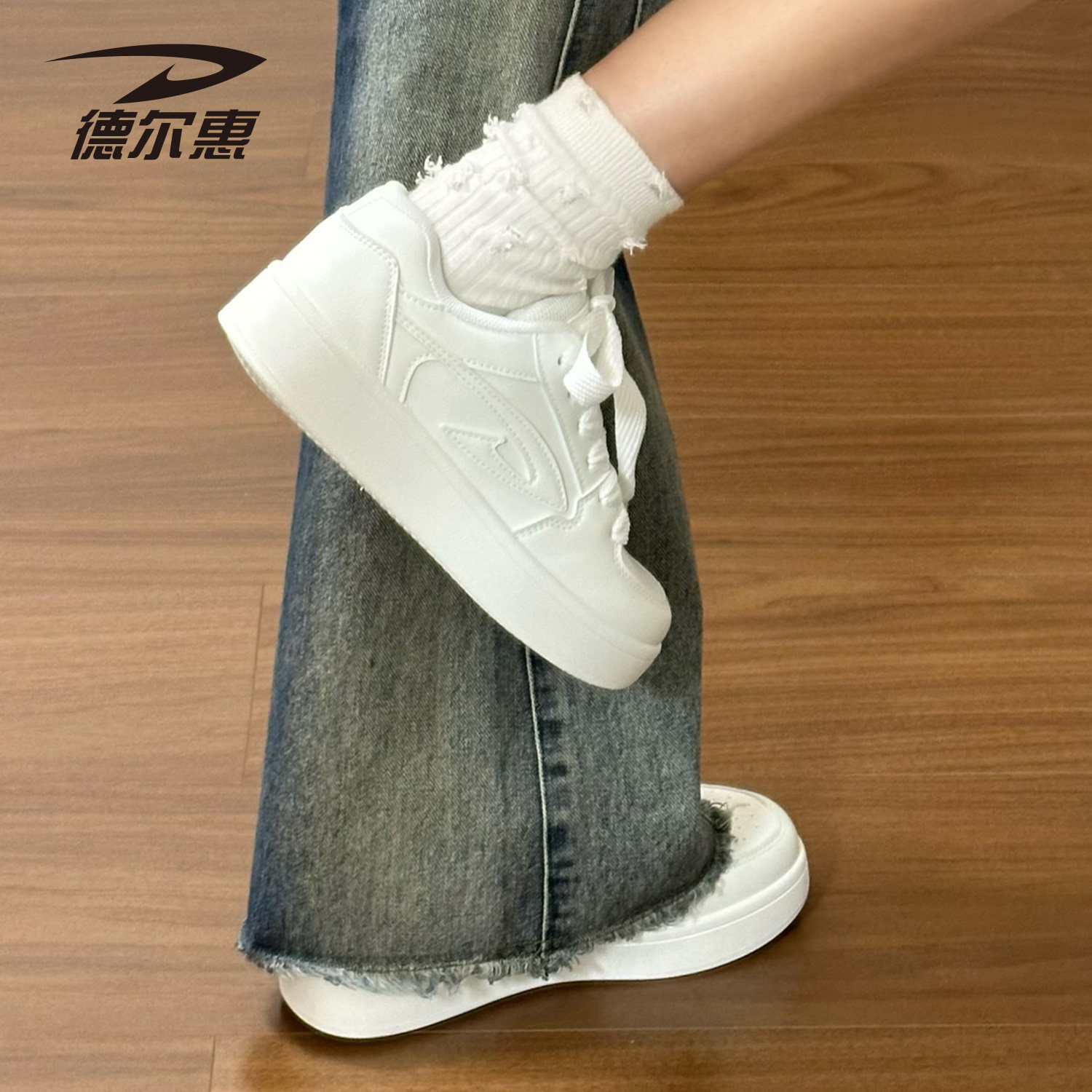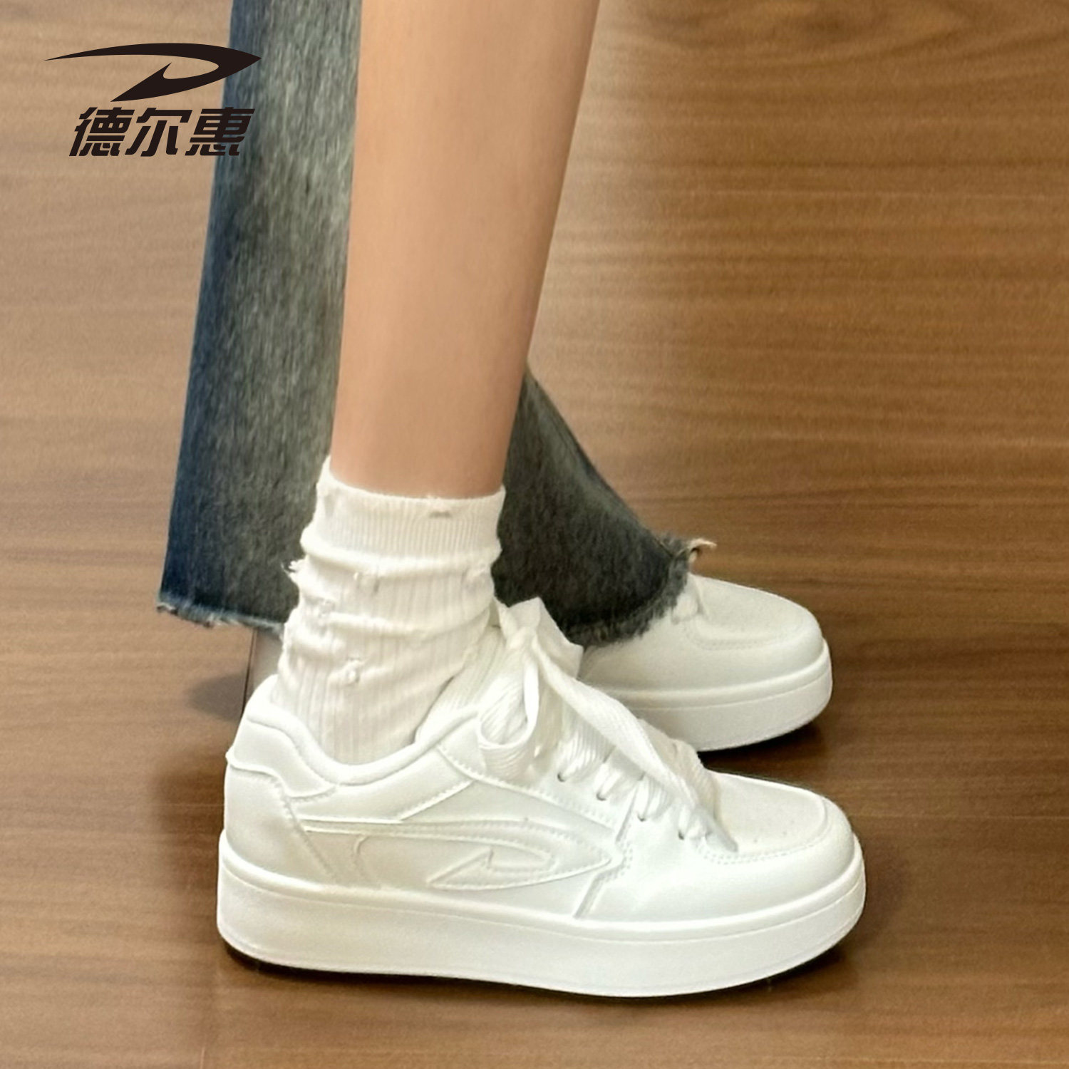 德尔惠小白鞋女款2026新款爆款厚底时尚百搭配裙子透气运动鞋板鞋