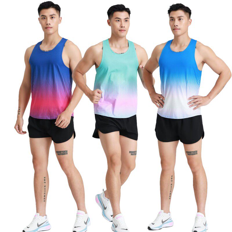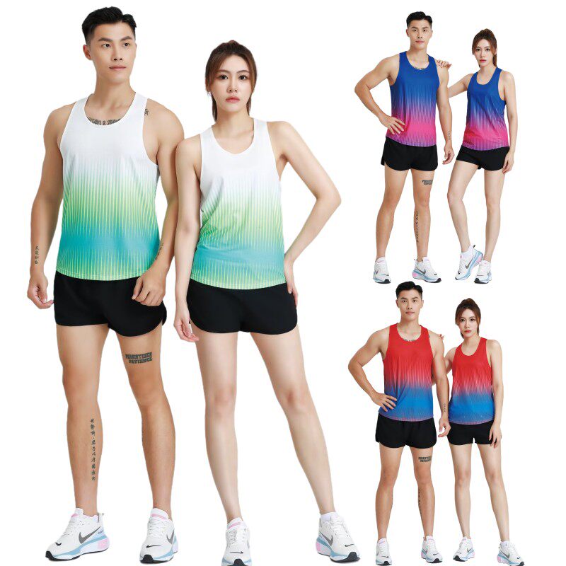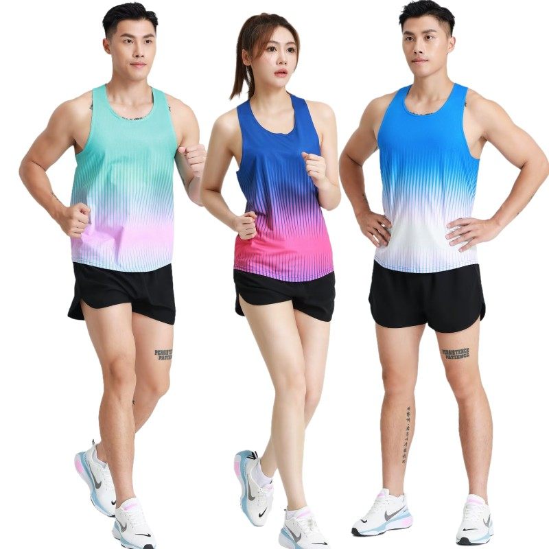健身衣跑步运动套装男女速干上衣T恤无袖田径服训练服马拉松背心