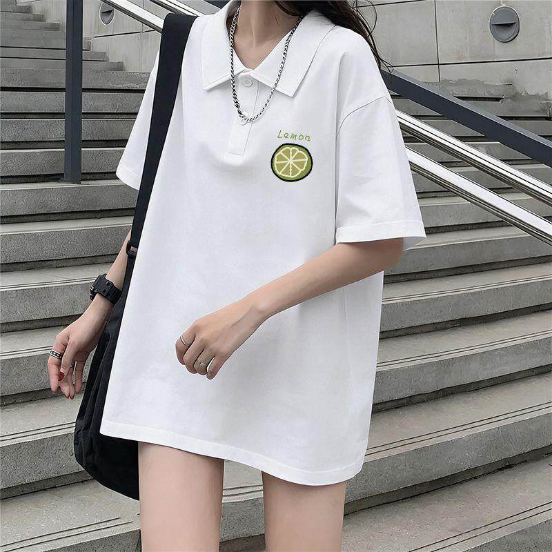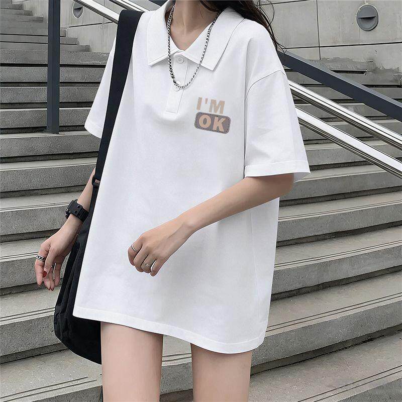 2026年夏天新款纯棉白色polo领短袖T恤女款显瘦宽松慵懒风ins上衣