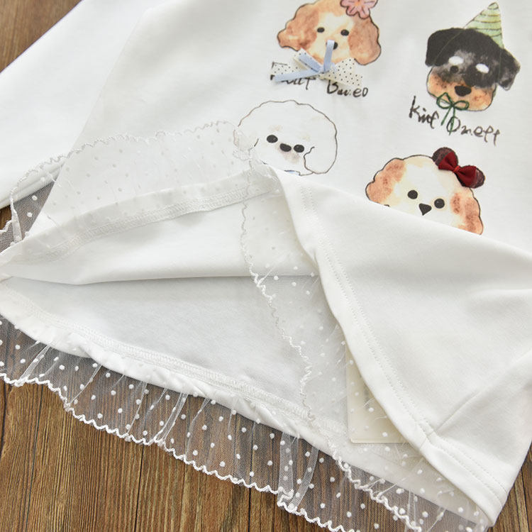 女童清新百搭花边拼接中长款印花打底衫 中大儿童长袖T恤上衣26春