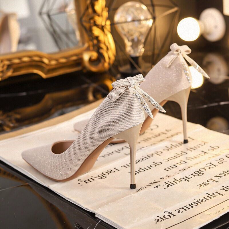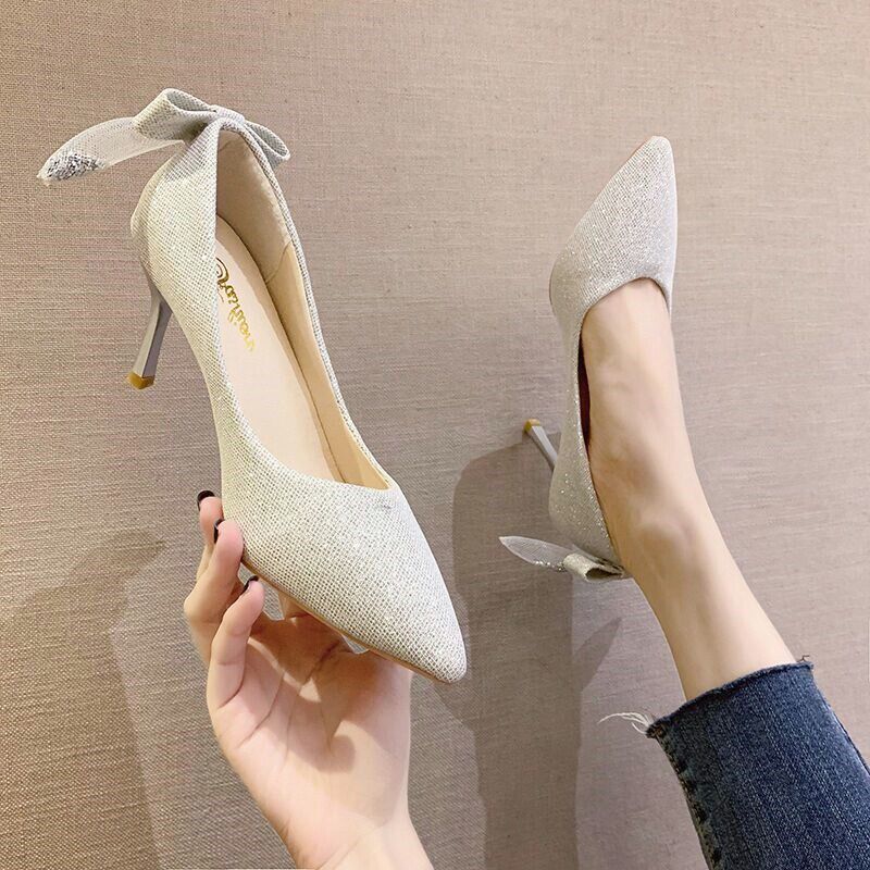 新品细跟a气质女鞋春夏百搭时尚蝴蝶结尖头单鞋2026年法式名媛高