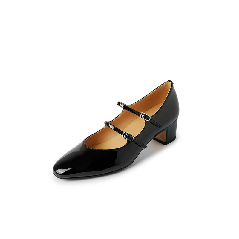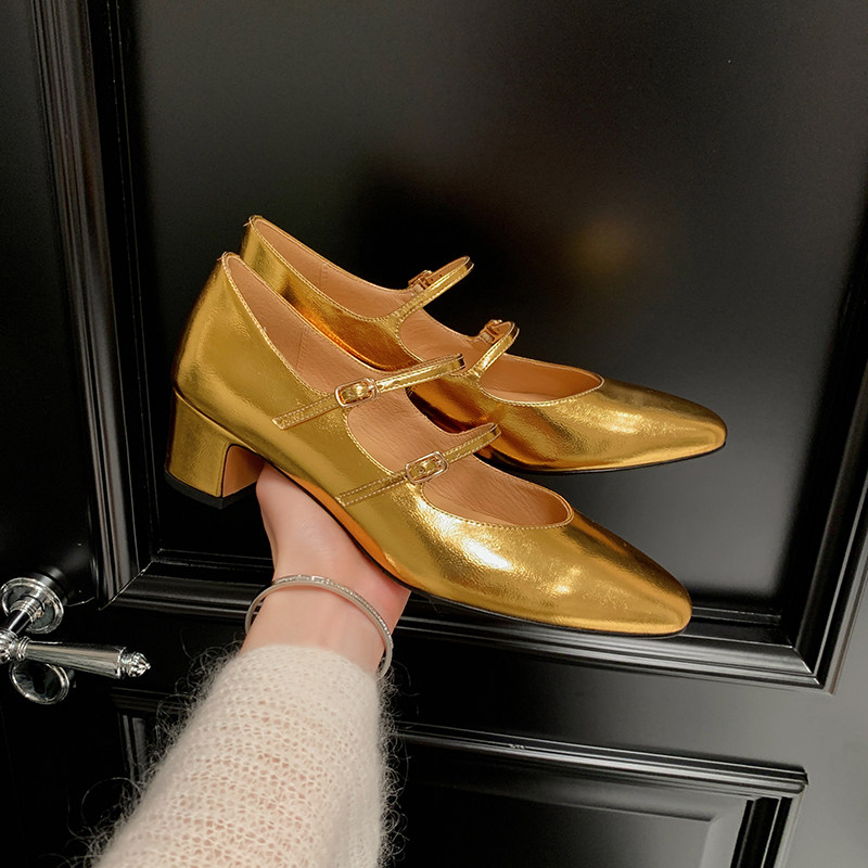 春隐形内增高7CM 羊皮圆头优雅一字扣舒适百搭软面皮玛丽珍单鞋女