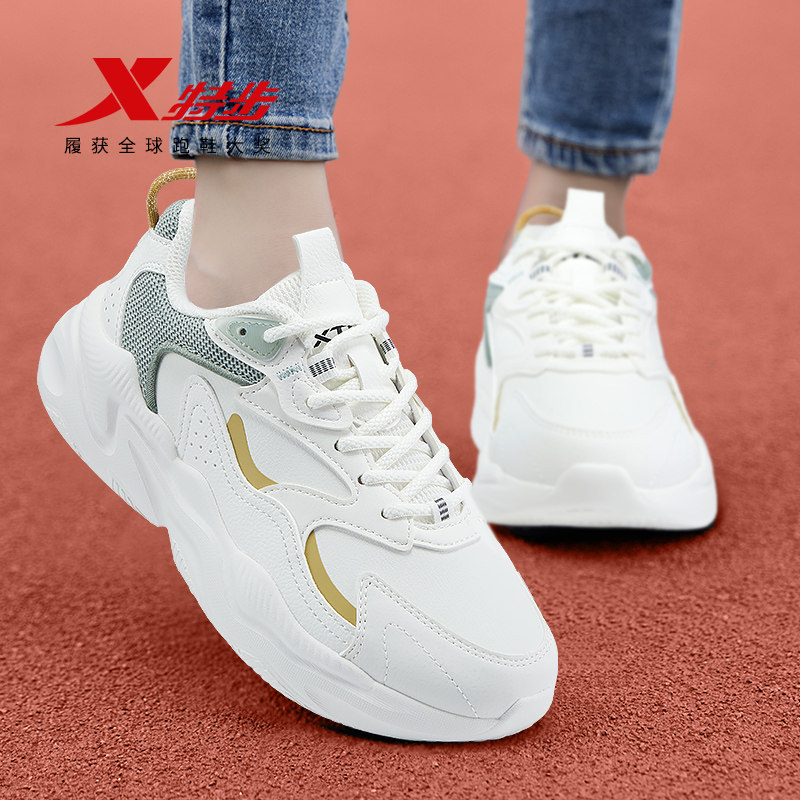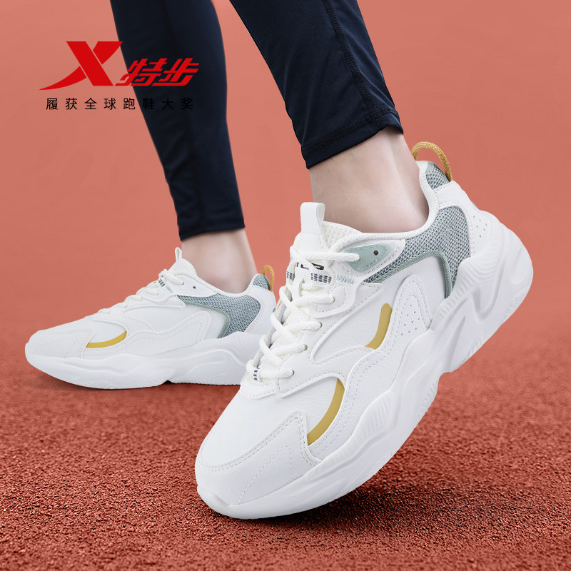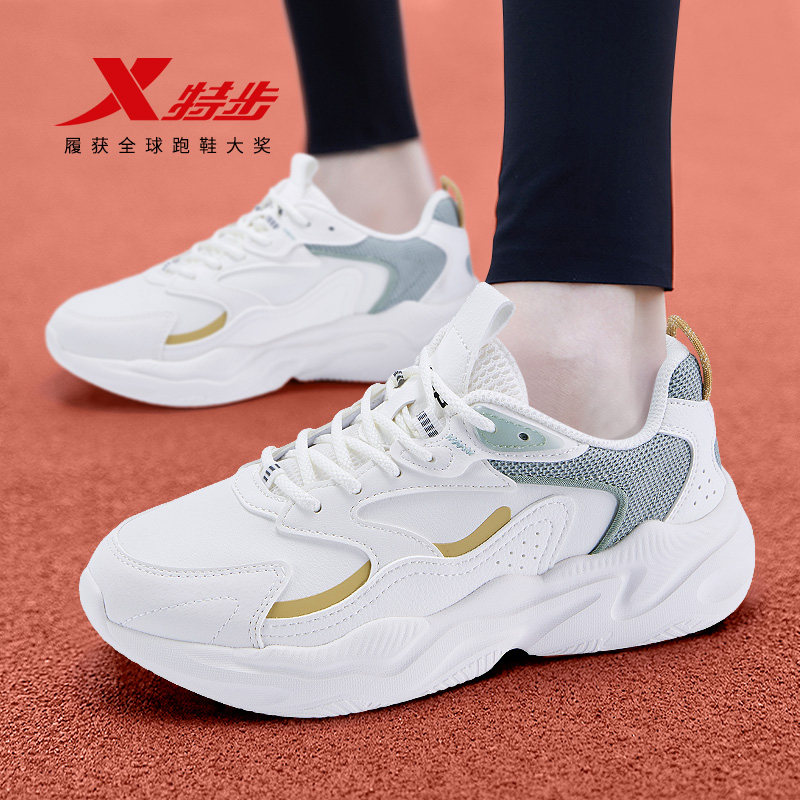 特步女鞋秋季初中生运动鞋软底跑鞋皮面防水官方旗舰跑步鞋女正品