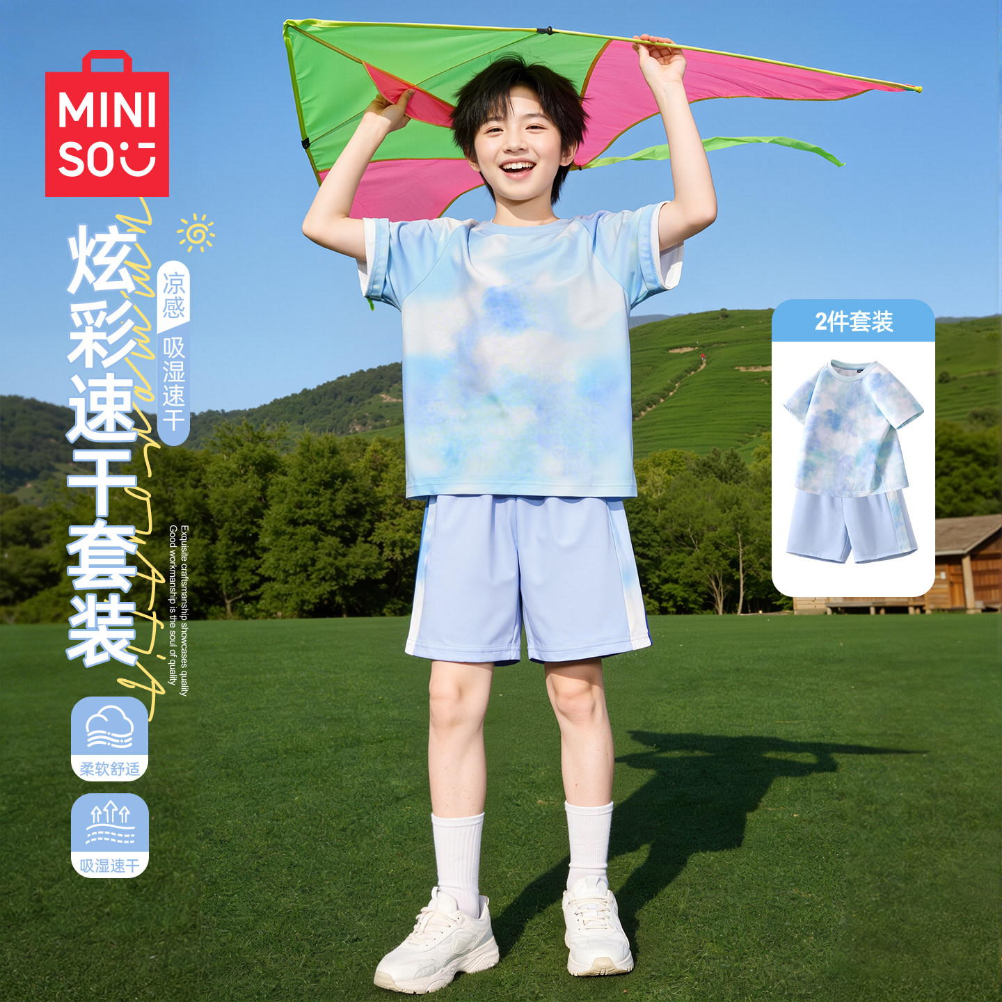 名创优品男童套装夏季2026新款大童短袖t恤速干凉感儿童夏装衣服C